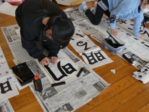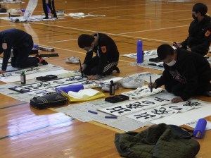 本日校内書き初め大会が各学年で開催されました。1,2年生はフェルトペンで、3年生以上は毛筆で、お手本をよく見て書いていました。「冬休みにたくさん練習したよ」「気をつけるところをお手本にメモしたよ」と言っていた子どももおりました。御家庭での御指導、本当にありがとうございました。