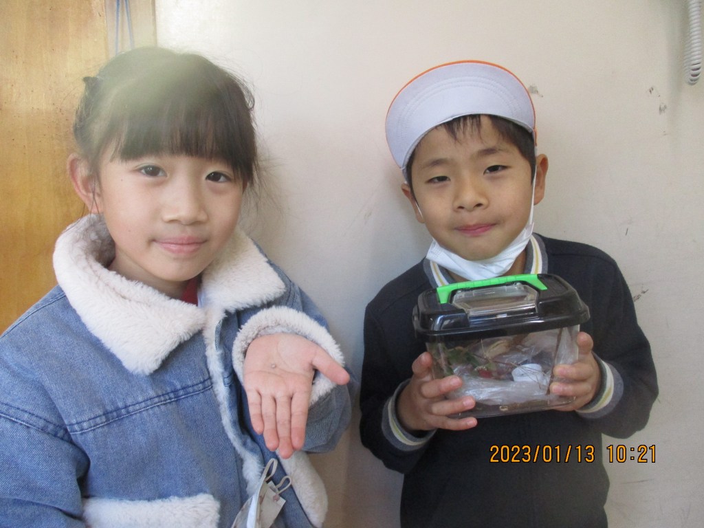 今日は風がなく穏やかな日中でした。休み時間には複数学年が入り混じってのドッジボール、男女混じっての長縄などほのぼのとした光景がありました。水道近くでは、「凍るか実験している」と3年生の子が容器に水を入れていました。生活科の「冬見つけ」に出かけた1年生がその様子をまとめていました。土日休みに入ります。コロナ、インフルエンザについてもあともう少し期間の辛抱だと思います。くれぐれも感染予防、体調管理にお気をつけください。