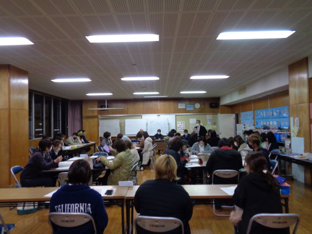昨晩、大井川東小学校区 地域防災連絡会が開かれました。地域の各地区代表の方々が参集し、市の地域防災課の方を講師に招いて「避難所運営ゲームHUG」を体験しました。実際に避難所を立ち上げ運営していく際の様々な状況をシミュレーションし話し合って決めていくゲームです。3月5日の市の初動訓練のあとにも小中学生も交えて行うようです。