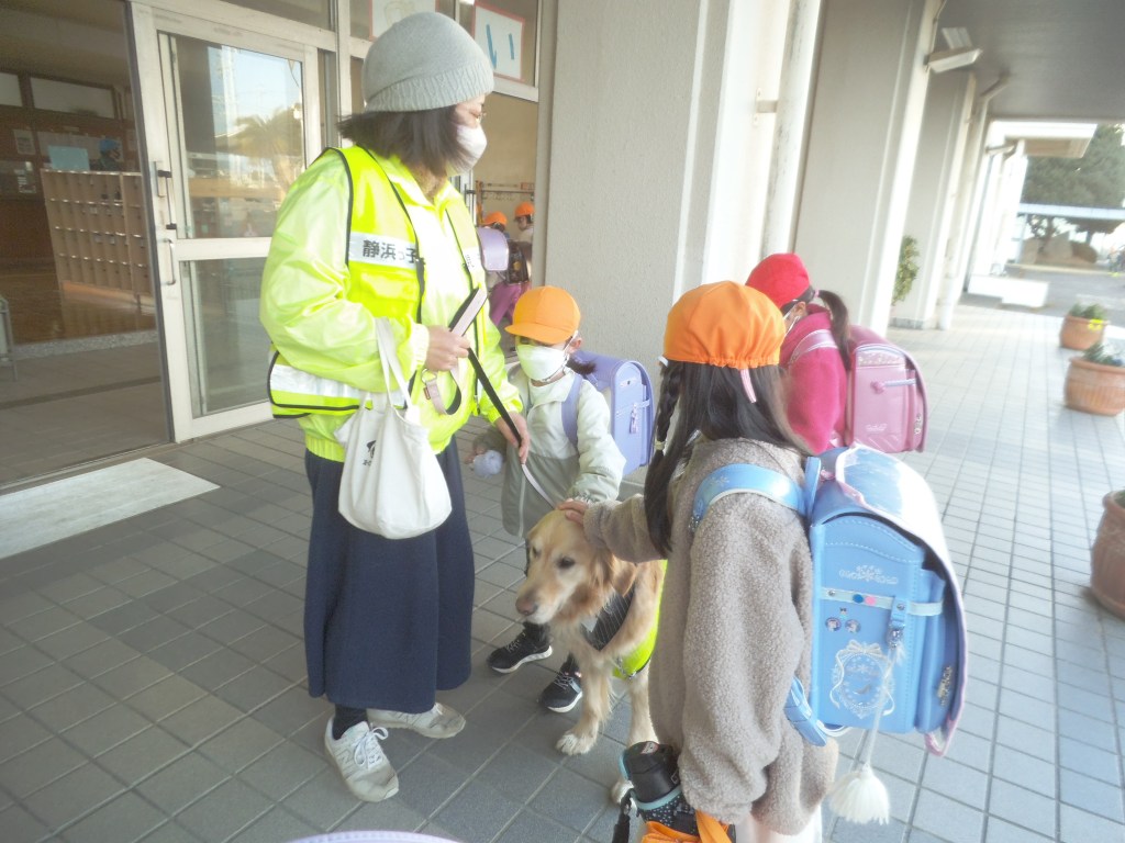 ウォークが蝶ネクタイ姿であいさつ運動に来てくれました。西小でのありがとうの会に招待されているようです。緊張気味のウォークでした。