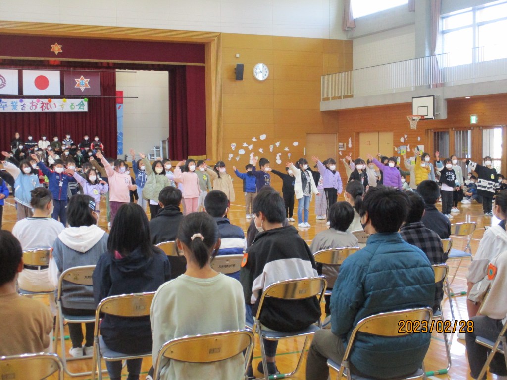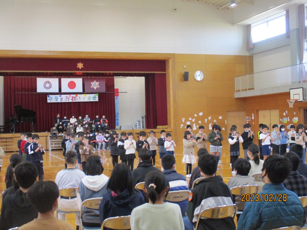 昨日、6年生の卒業をお祝いする会が行われました。5年生が計画、準備、運営をし、各学年から「ありがとう」のメッセージや歌、エールなどが贈られました。6年生からも下級生に向けての応援のエールがありました。とても温かな会となりました。5年生、素敵な会をありがとう。6年生、いままでありがとう。