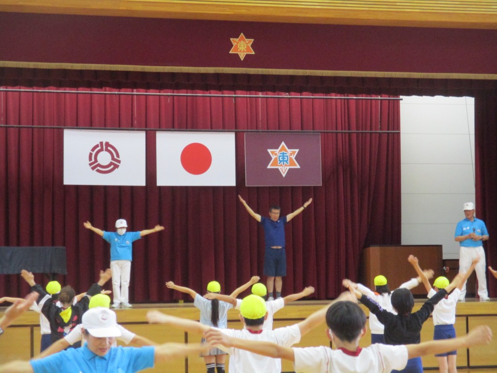 6年生のラジオ体操講習会が行われました。足の開き方、腕の伸ばし方など、基本的な動きを指導していただき、一番効果的なラジオ体操になる動きを教えていただきました。運動会の準備体操ではラジオ体操を行います。6年生の無駄のない美しい動きを見ることができそうです。講習会の最後は、修了証書をいただきました。