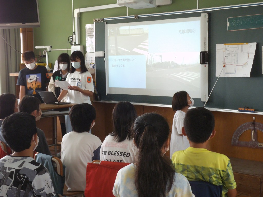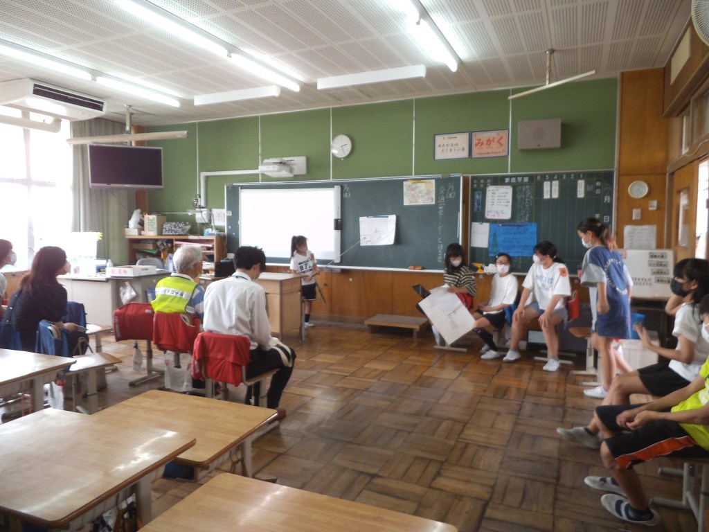 6年生が交通安全リーダーとして、毎日通っている通学路の危険個所を発表しました。子供会の紹介を入れながら、より安全な通学路になるために気になっているところを写真で紹介しながら伝えました。6年生の発表を焼津警察署、くらし安全課、子供見守り隊、PTA役員の皆さんに聞いていただきました。大人から見た子供の登下校の様子も聞き、さらに安全を意識しながら、リーダーとして登下校を気を付けていこうという思いを持ちました。
