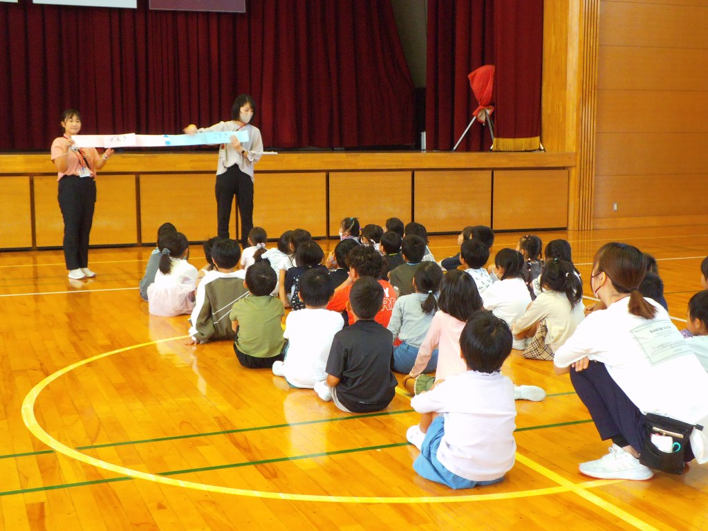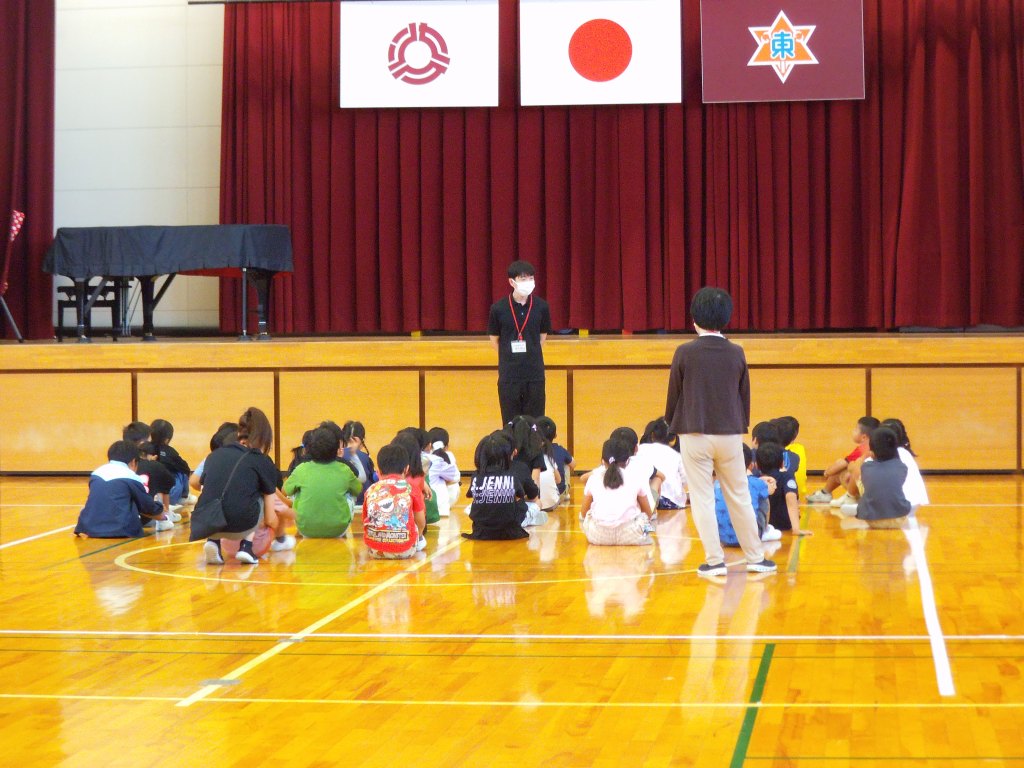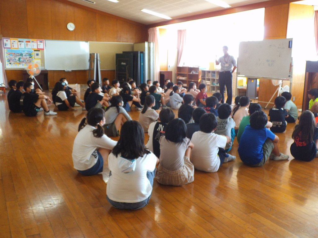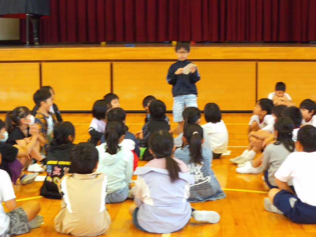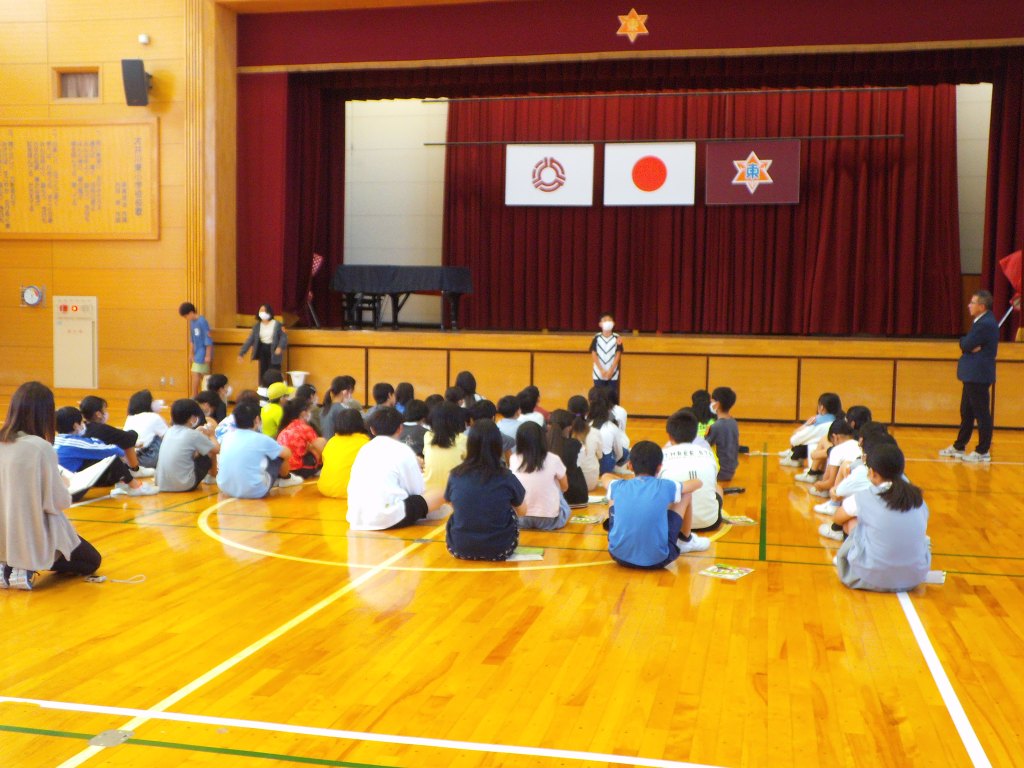 天候にも恵まれ、富士山のふもとにある朝霧野外活動センターへ行ってきました。1日目は朝霧探検隊。14キロメートルほどあるコースをおよそ6時間かけて歩いてきました。途中、厳しい道があったり、迷いそうになったりしながらも、グループの仲間と協力をして全員が元気よくゴールをしました。夜は、キャンプファイヤー。山の神があらわれ、神様から大切なものをいただきました。火を囲みながら歌ったり、踊ったりし、さらに仲間との絆を深めた夜でした。