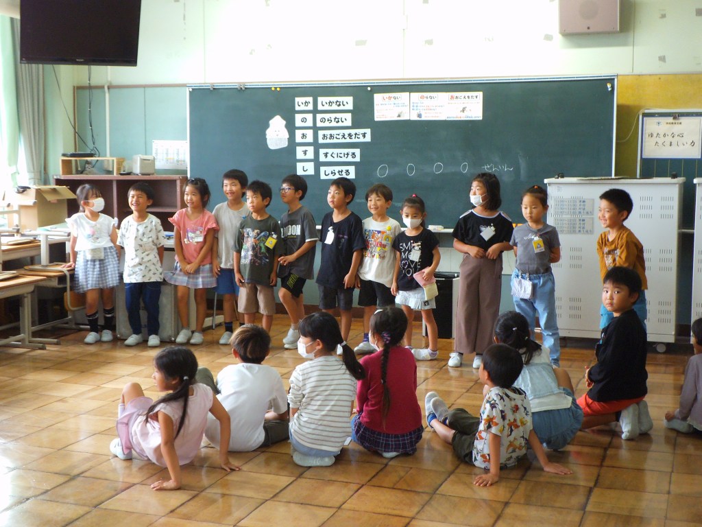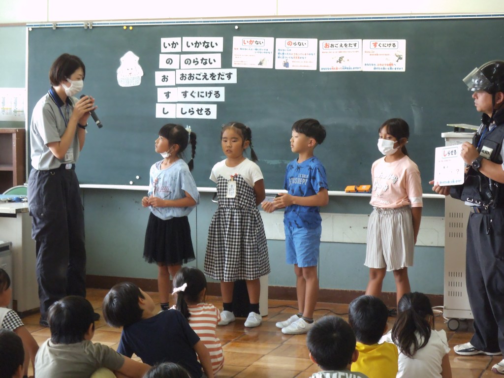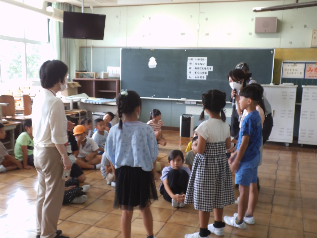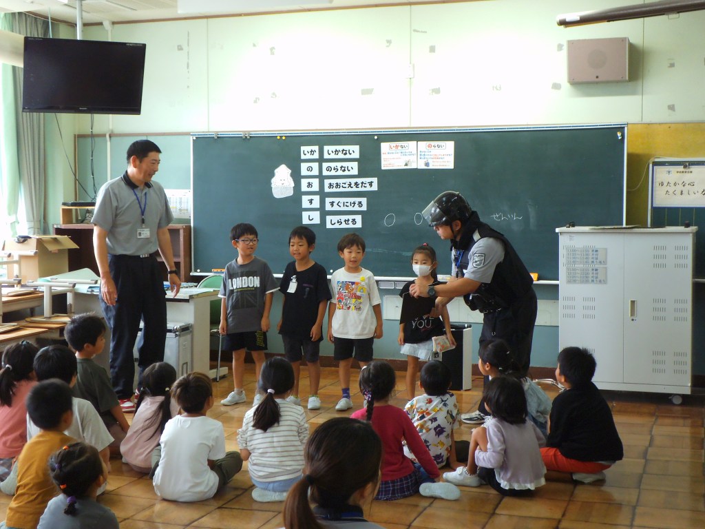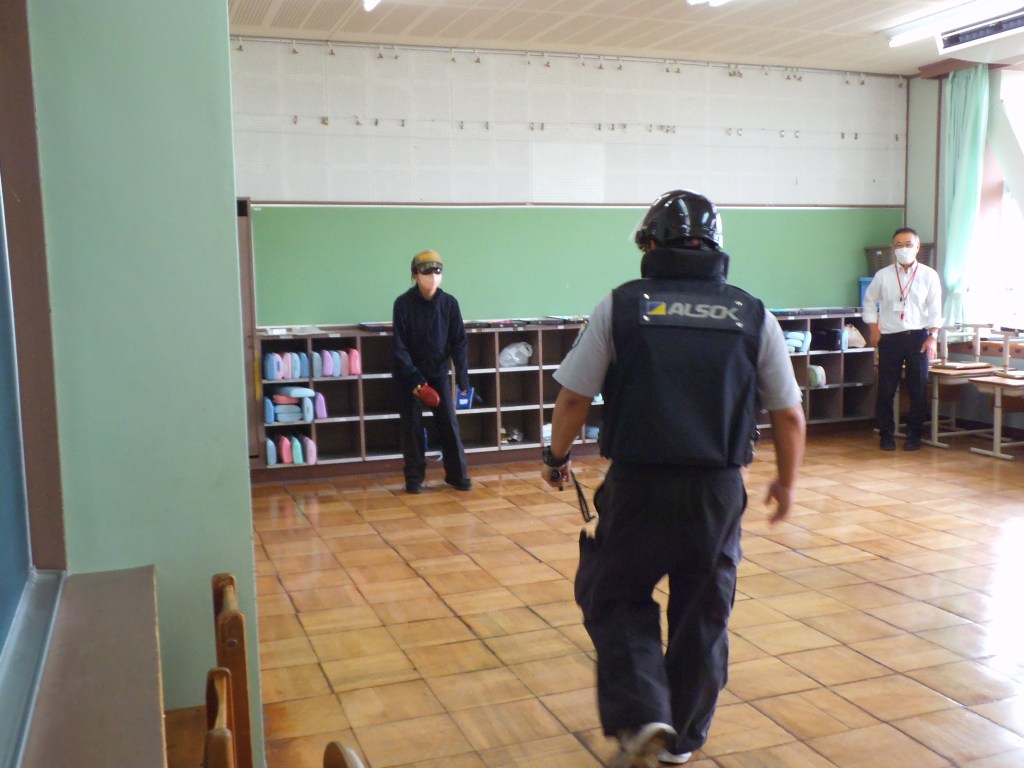 2日に2年生、4日に1年生が不審者対応訓練に参加しました。ALSOKの協力により、「い・か・の・お・す・し」の意味を確認したり、声の出し方、「助けて」と言いながら逃げる、不審者を見たらすぐ大人に報告するなど、たくさんのことを学びました。活動の途中、不審者に変装した職員が部屋に入ってくると、「助けて」と言いながら逃げ、侵入してきた不審者の特徴を担任の先生に知らせていました。