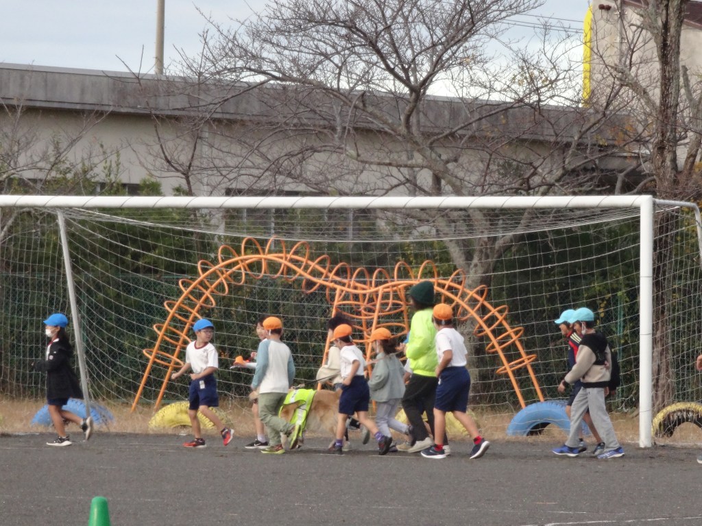 持久走の季節がやってきました。どの学年も毎朝、休み時間、練習に励んでいます。今日は、ウォークも一緒に走りました。