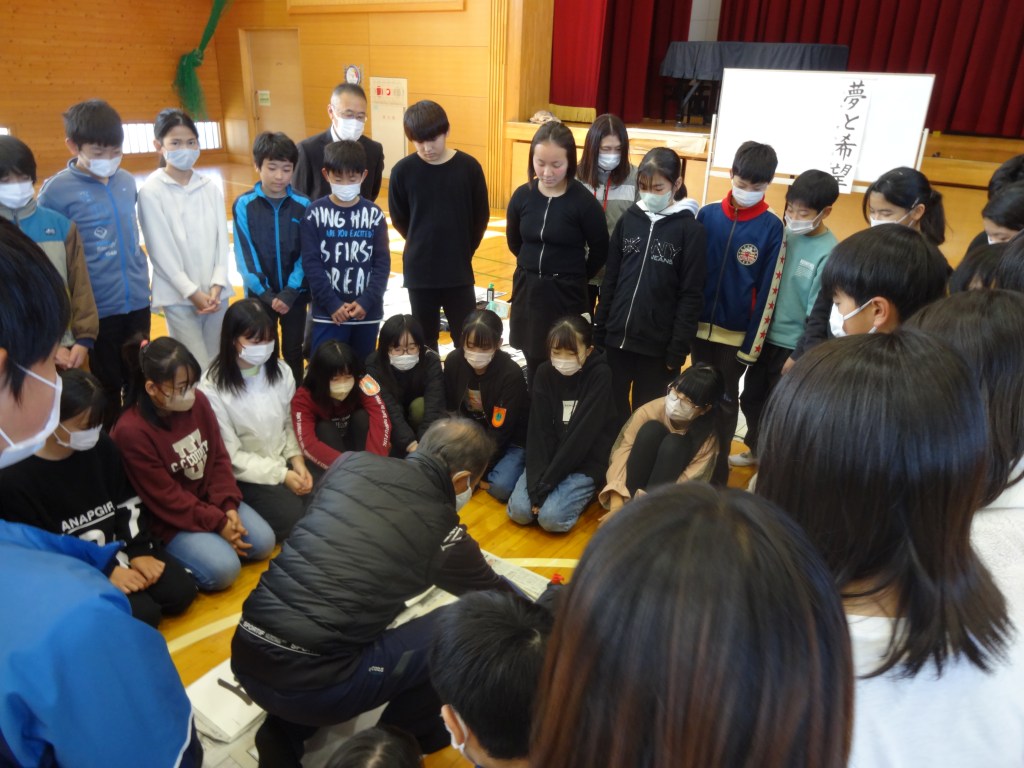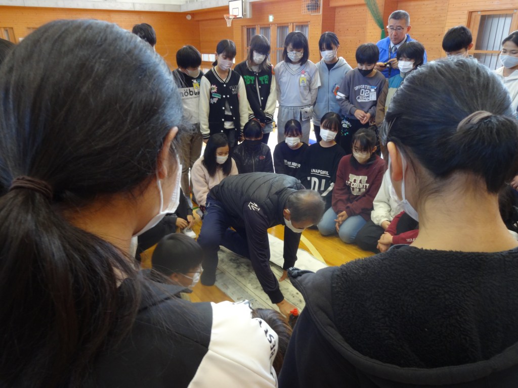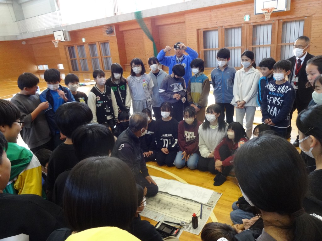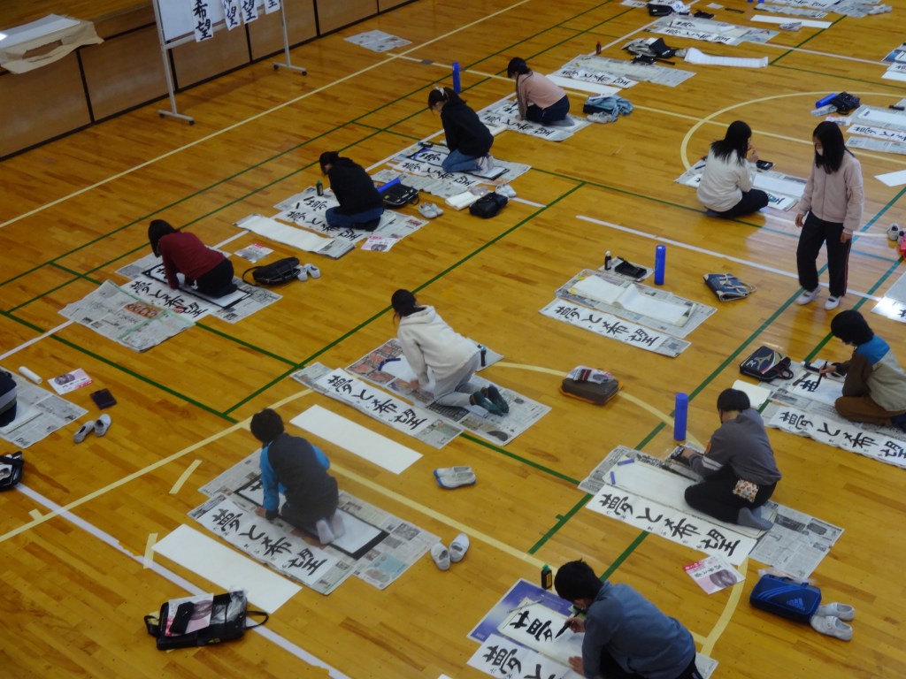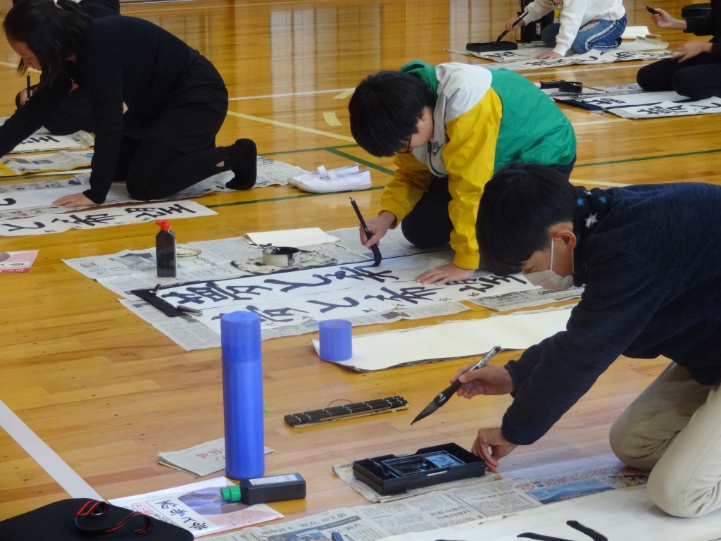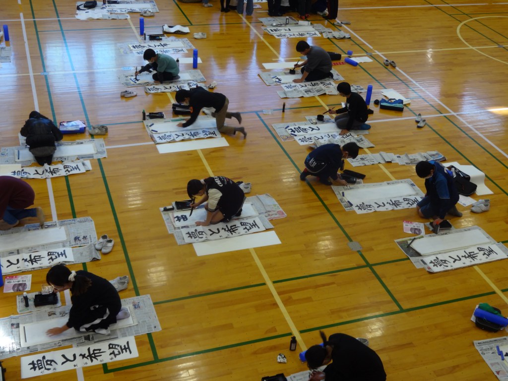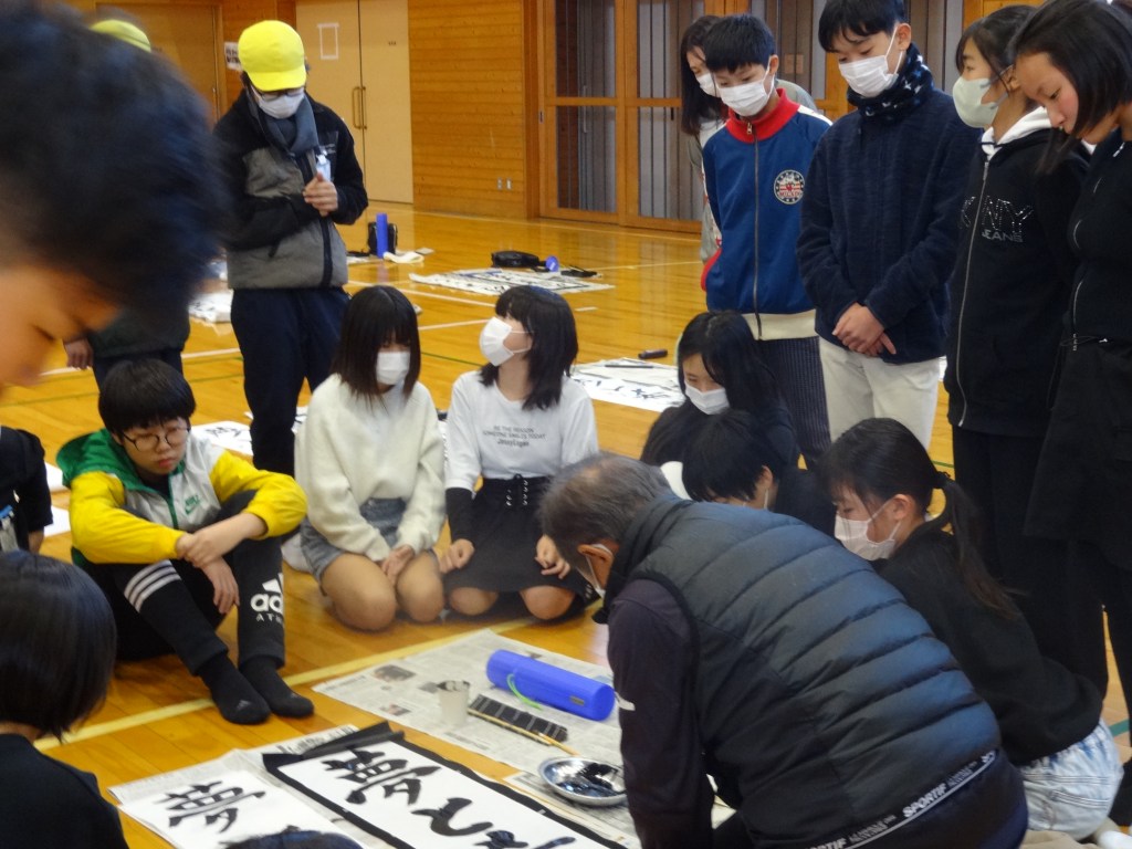 薮崎天峯先生を講師にお招きして、6年生が書き初め会を行いました。天峯先生の書く姿を間近に見た6年生は、これまでの練習も生かし、自分の作品作りに集中していました。