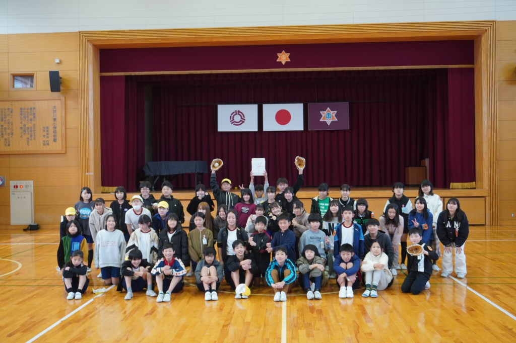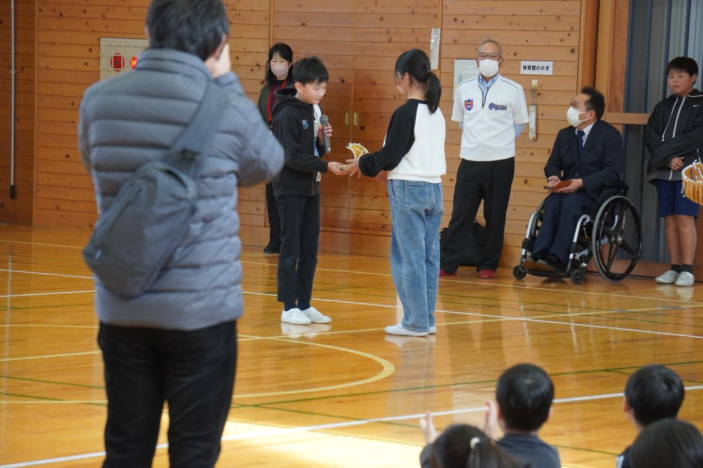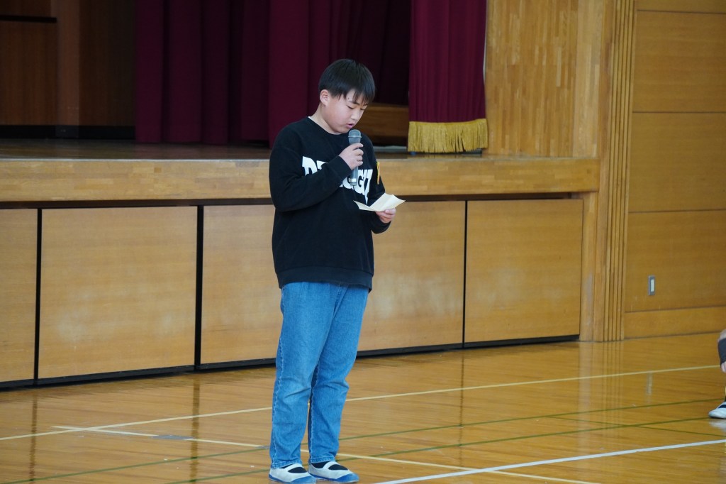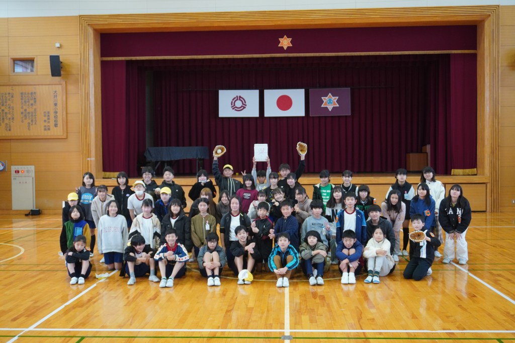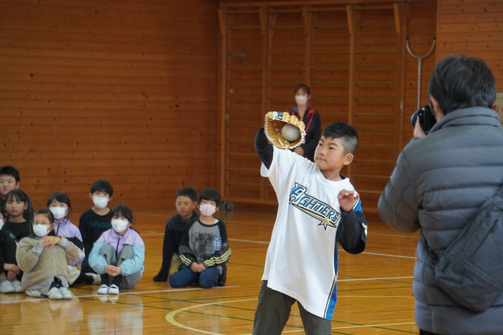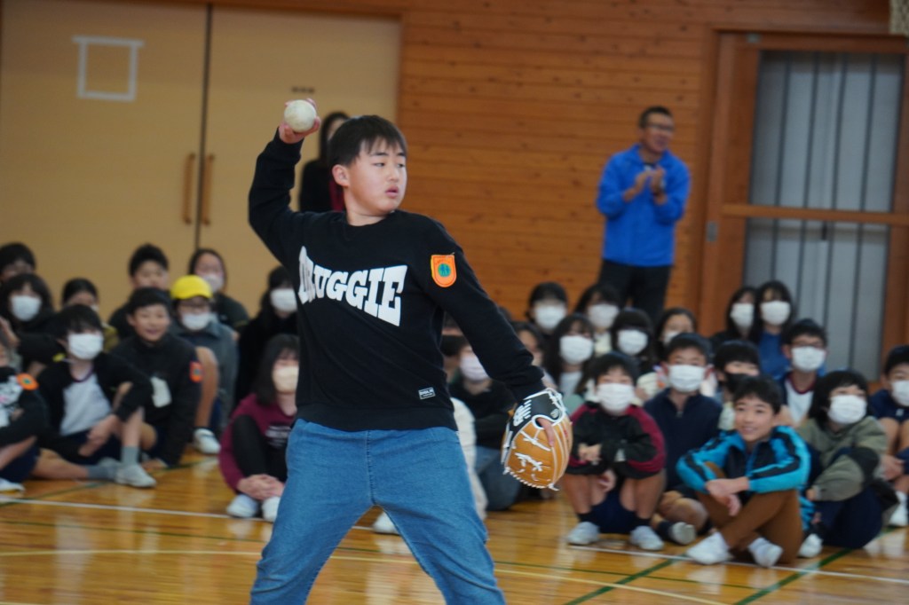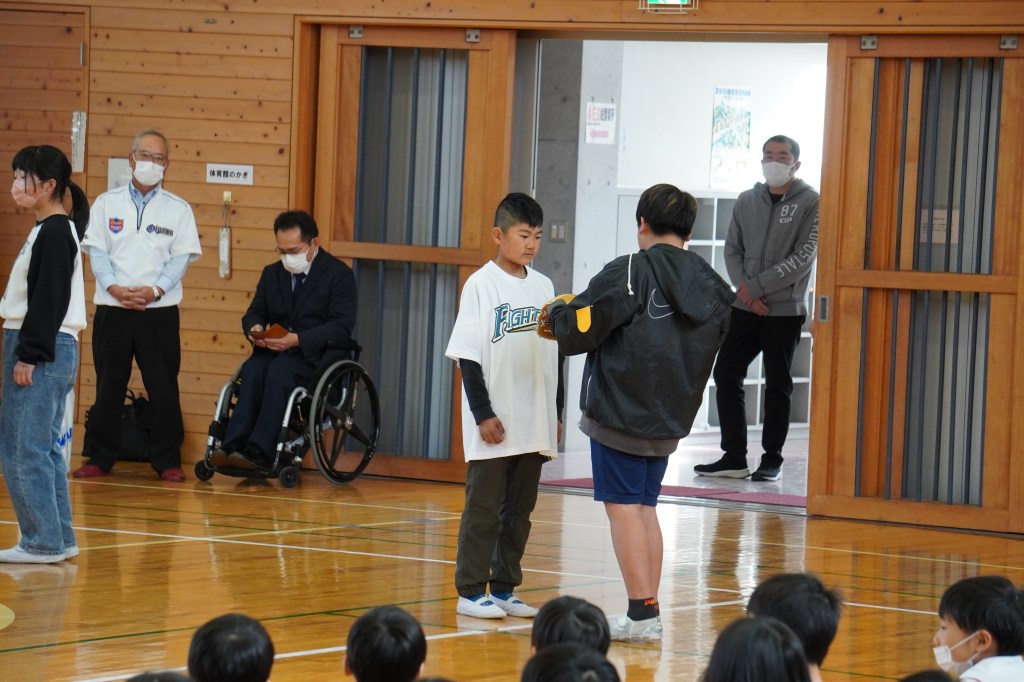 本校にも大谷グローブが届き、贈呈式を行いました。虹の会の委員長の司会で進められた式では、校長先生から「大谷選手の思いを受けて、このグローブを使って、笑顔と元気と勇気をつなぎ、もっともっと明るい学校にしていきましょう。」の言葉とともに3つのグローブが子供たちに渡されました。代表の子供たちは大谷選手にお礼を伝えながら、キャッチボールを披露し、低学年からの歓声があがりました。また、卒業を間近に控えたこともあり、5年生に「大事に使うこと」、「楽しい学校にしていくこと」を願いグローブを渡しました。最後に代表児童は「これからも野球を続け、大谷選手のような野球選手になりたい」と夢も語りながらお礼の言葉を述べました。