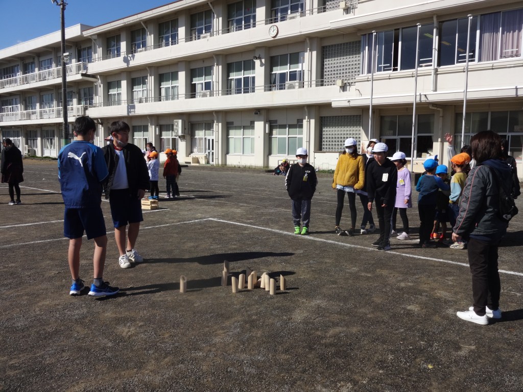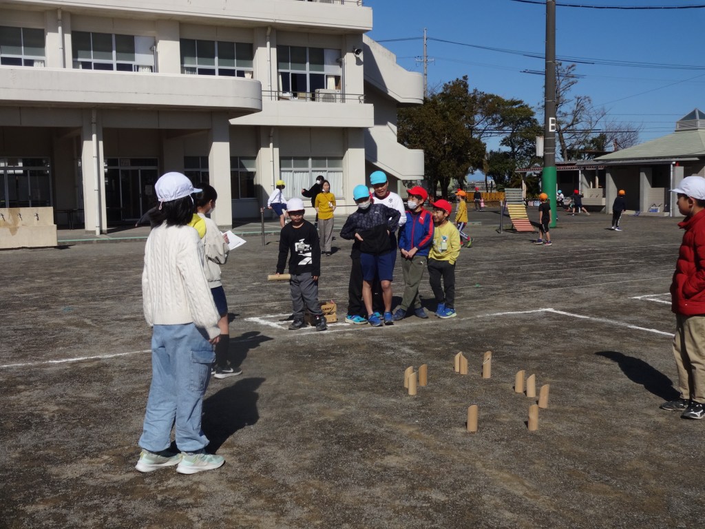 卒業を控えた6年生が学校のために何かできないかと考え、1組の子どもたちが全校モルック大会を開催しました。希望者を募った大会でしたが、多くのしずはまっ子が参加しました。低学年にもわかるように丁寧にルールの説明をし、参加者は楽しく活動しました。この大会を開催するにあたり、子どもたちが自分たちで電話をしたり、依頼書を作ったりしながら、モルックを市や自治会に借りました。