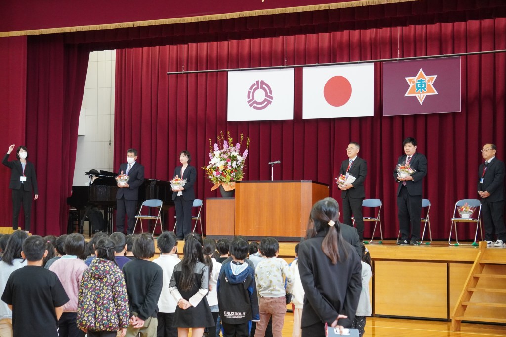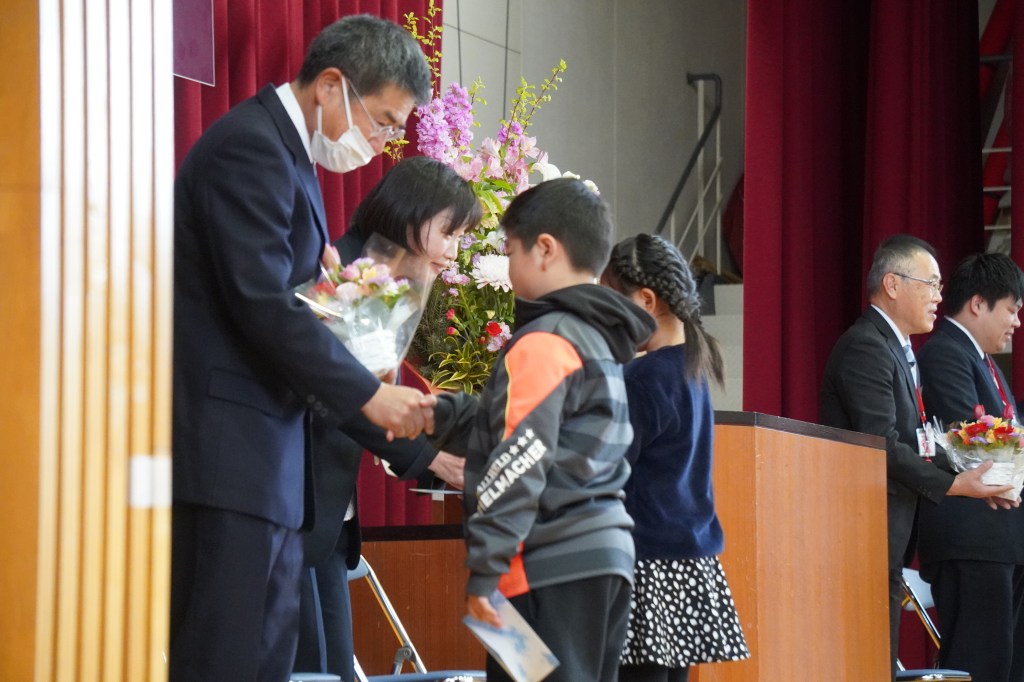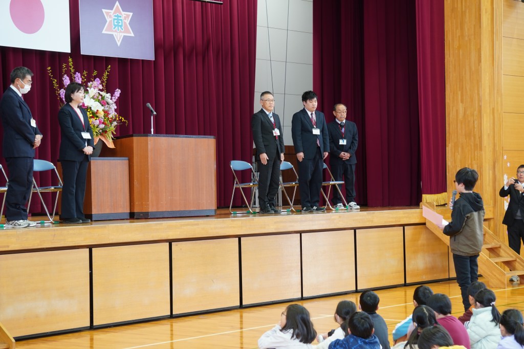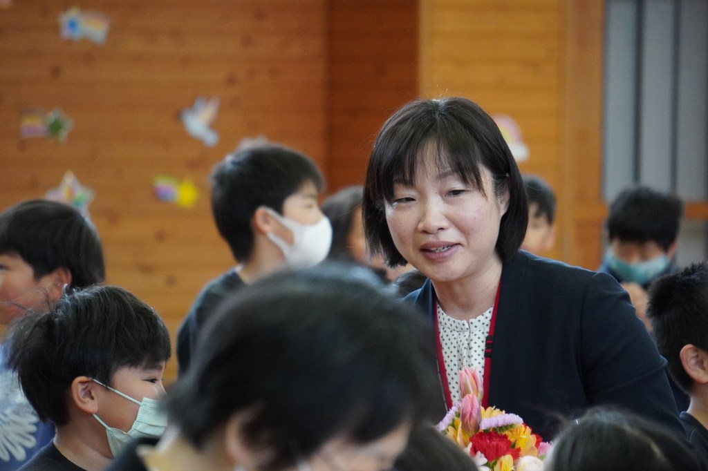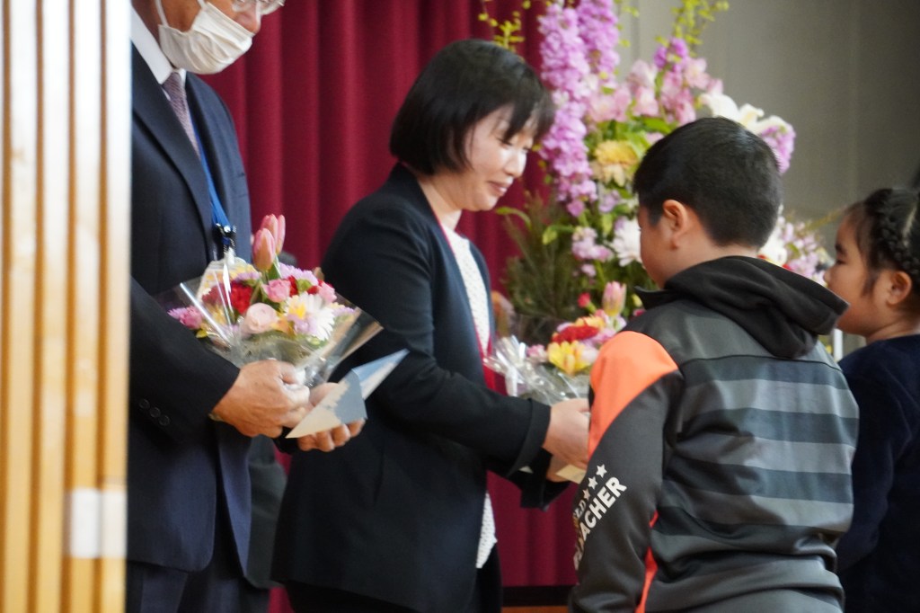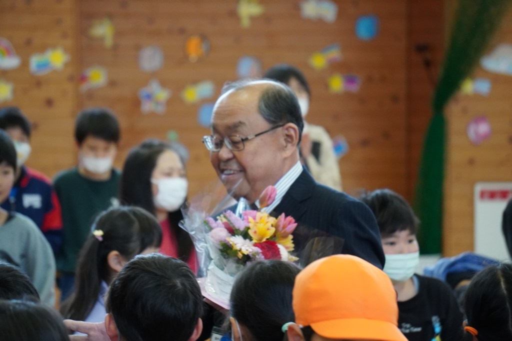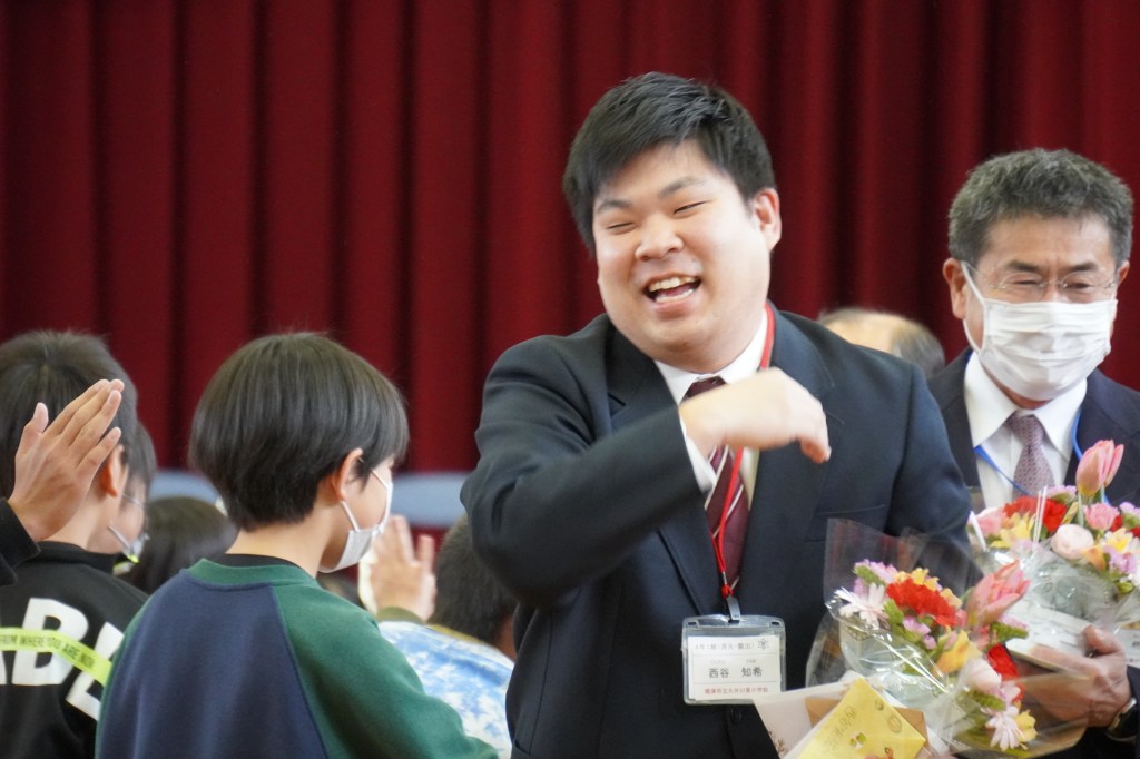 令和5年度末人事異動により、5名の先生方とお別れすることになりました。牧田年史教頭先生、清水悟先生、増田直司先生がご退職、小城淑子先生、西谷知希先生はご栄転となりました。牧田教頭先生は退職後、焼津西小でお勤めすることなり、小城先生は教頭先生として大富小学校へ、西谷先生は小川小学校へ異動となりました。大井川東小学校を支えてくださった5名の先生方とお別れすることはとてもさみしいことですが、みんなで笑顔で送ろうと決め、元気なしずはまっ子の笑顔で先生方を送りました。新転地でもご活躍ください。