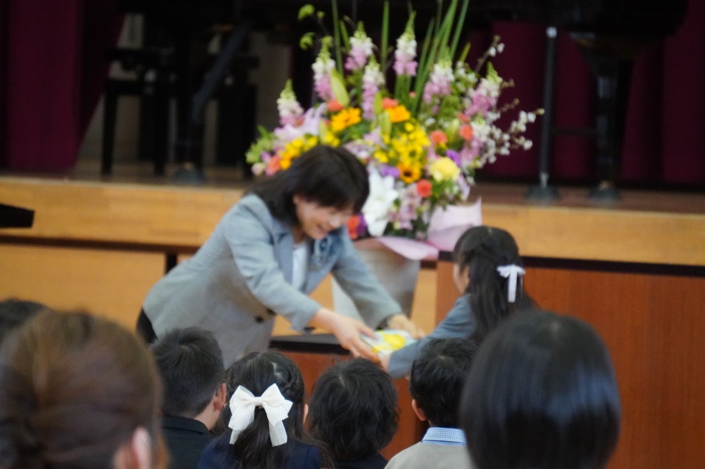 小雨が降る日ではありましたが、満開の桜が咲く中、45名の新入生が大井川東小学校に入学をしました。どの子も緊張気味でしたが、桜に負けないほどの笑顔で会場を明るくしていました。担任の呼名に「はい」と気持ちのよい返事をしました。校長先生や担任の先生、PTA会長のお話も最後まで聞きました。教科書や横断バックなどをいただき、明日から始まる学校生活をとても楽しみにしていました。