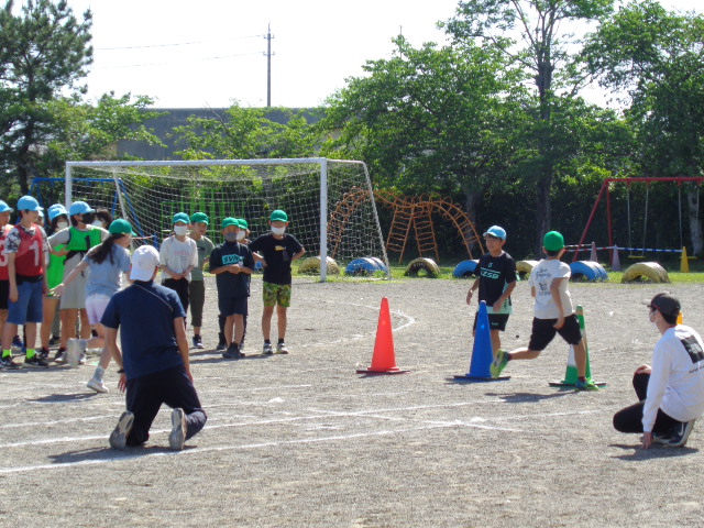 初夏の気持ちのよい風が薫る中、運動会が行われました。どの学年も練習を重ね、「協力し 勝利のみちを かけぬけろ」のスローガンに向けて取り組みました。競技はもちろんのこと、応援も係の仕事もどれも熱心に行う姿は素敵でした。特に4年生は運動会を盛り上げようと歌声リーダーが開会式終了後、予告なしにみんなで運動会の歌を歌おうと出てきました。突然のことでしたが、全校児童、4年生の歌声リーダーの気持ちに賛同し、大きな声で歌いました。最後まで全員がスローガンに向けて取り組んだ運動会でした。