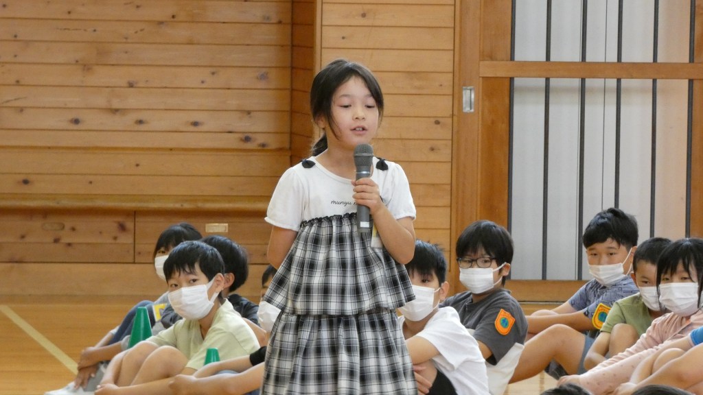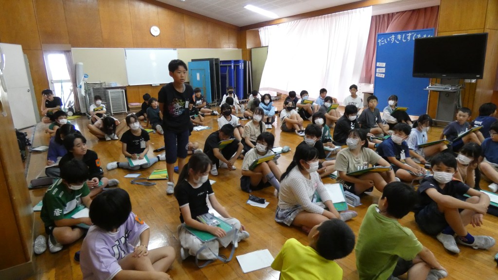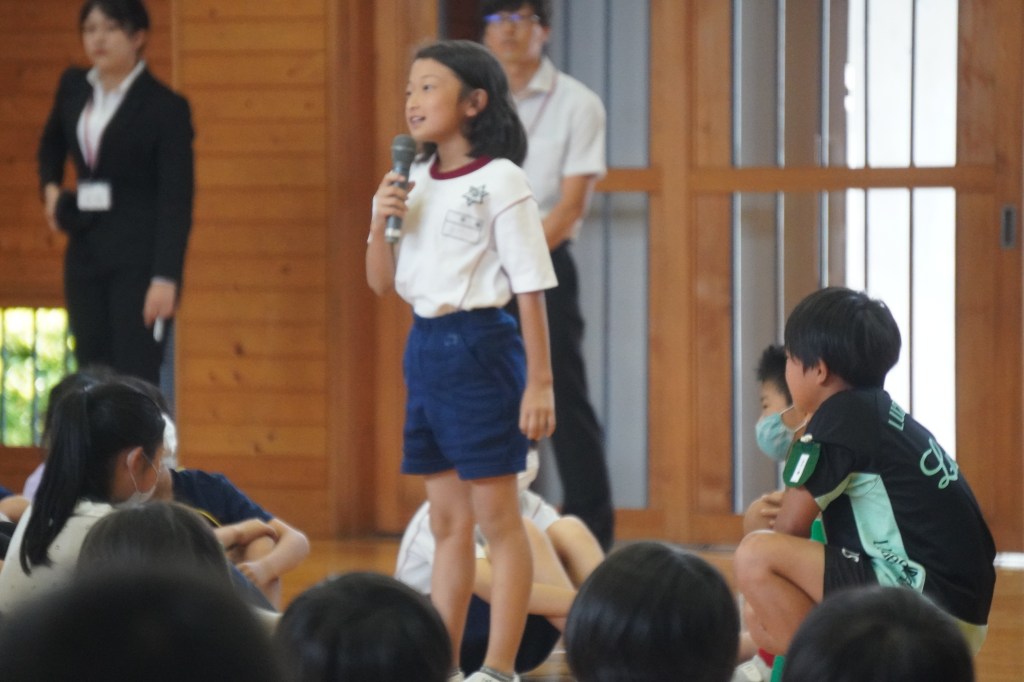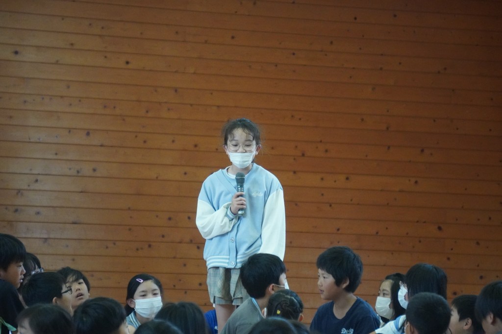 運動会が終わり、6月に入りました。新しい学級、学年の仲間との絆を深め、このステージからはさらに力をつけるためにとにかく挑戦し、やってみる、失敗したら再挑戦してみる、そんなステージにしていこうとみんなで気持ちを揃えるつどいを行いました。虹の会の子どもたちが企画、運営しました。「なかよしのステージで頑張った事がある人は発表してください。」と司会が呼びかけると、誰に頼んでいたわけでも、そんな企画があることも伝えていなかったのに、全校児童の前で堂々と発表する子供がいました。また、発表している子の言葉を熱心に聞く姿もありました。しずはまっ子の成長を感じた瞬間でした。また、この場を借りて、教育実習生の紹介もありました。
