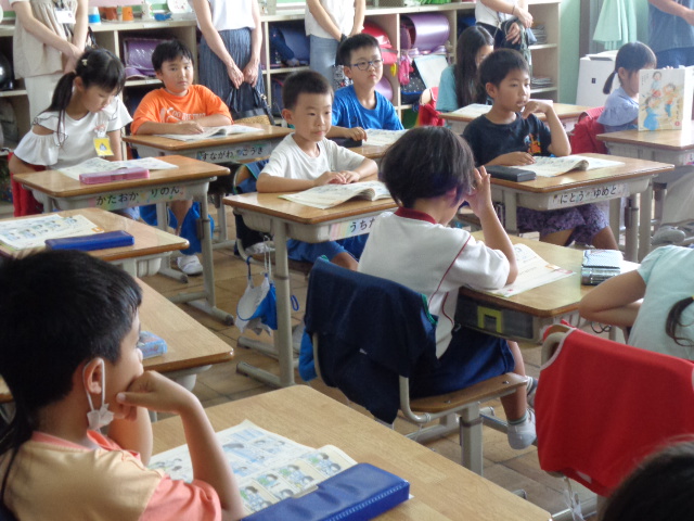 暑い日となりましたが、多くの保護者、地域の皆さんが低学年の子どもたちの授業の様子を参観にいらっしゃいました。空調設備も整い、暑い日でも快適に生活することができるようになり、子どもたちも集中して学習していました。1年生は、わからないことがあると近くの友達に聞きに行くようになり、進んで学習することができるようになりました。これから夏休みに向け、さらに頑張っていきます。