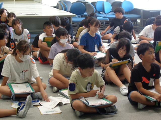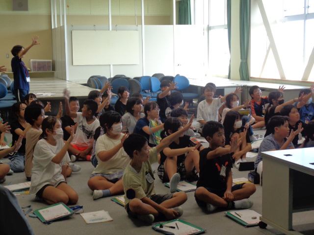 2日間の活動を終え、4年生の子供たちが帰ってきました。1日めはディスカバリーパーク焼津天文科学館で望遠鏡を覗いたり、プラネタリウムを見たりと施設内の活動を満喫しました。途中、焼津市で行われたシェイクアウト訓練にも参加し、突然の災害にも対応できる練習もしました。夜は子供たちで考えたリクリエーションを楽しみました。2日めは天候が心配されたため、時間を短縮して大漁ハイクを行い、その後は青少年の家の広場でニュースポーツを楽しみました。一緒に活動した他校の子供たちとのふれあいも大切にしながら、テレビもゲームもない生活を自分たちの力で楽しいものにしていきました。夕飯も朝食も大勢で食べることがほとんどない子供たち、友達と一緒に食も進みました。