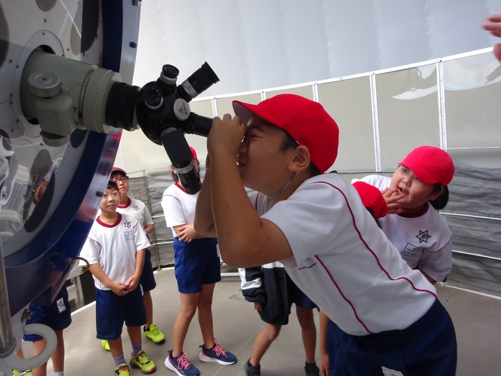 2日間の活動を終え、4年生の子供たちが帰ってきました。1日めはディスカバリーパーク焼津天文科学館で望遠鏡を覗いたり、プラネタリウムを見たりと施設内の活動を満喫しました。途中、焼津市で行われたシェイクアウト訓練にも参加し、突然の災害にも対応できる練習もしました。夜は子供たちで考えたリクリエーションを楽しみました。2日めは天候が心配されたため、時間を短縮して大漁ハイクを行い、その後は青少年の家の広場でニュースポーツを楽しみました。一緒に活動した他校の子供たちとのふれあいも大切にしながら、テレビもゲームもない生活を自分たちの力で楽しいものにしていきました。夕飯も朝食も大勢で食べることがほとんどない子供たち、友達と一緒に食も進みました。