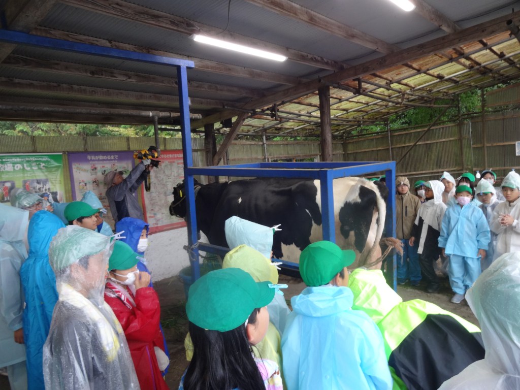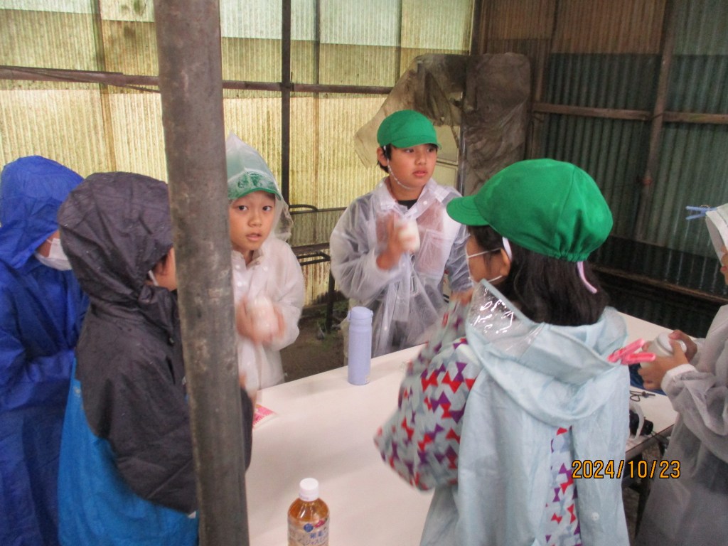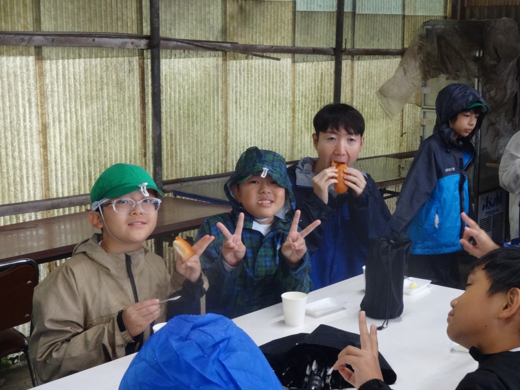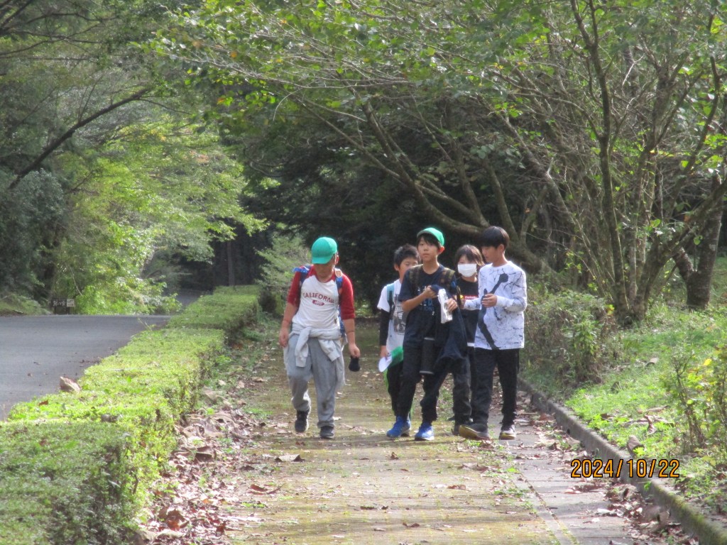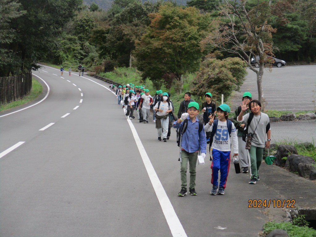 5年生が県立朝霧野外活動センターへ行き、大自然の中で活動してきました。1日めは天候にも恵まれ朝霧の地域をコマ地図を頼りに探検しました。初めて歩く道は不安でしたが、仲間と協力して全員ゴールできました。夜はキャンプファイヤーで楽しみました。山の神も登場し、火を囲んで歌ったり、踊ったりして1日の振り返りながら、友達と活動しました。2日めはあいにくの雨模様でしたが、松下牧場へ出かけ、酪農体験、バダー作りなどを楽しみました。どの活動にも精一杯取り組む子供たちは、この2日間で自分たちで考え、判断する力をつけてきたように思います。