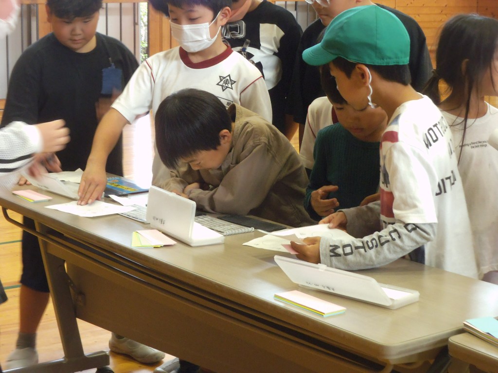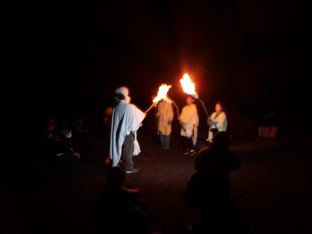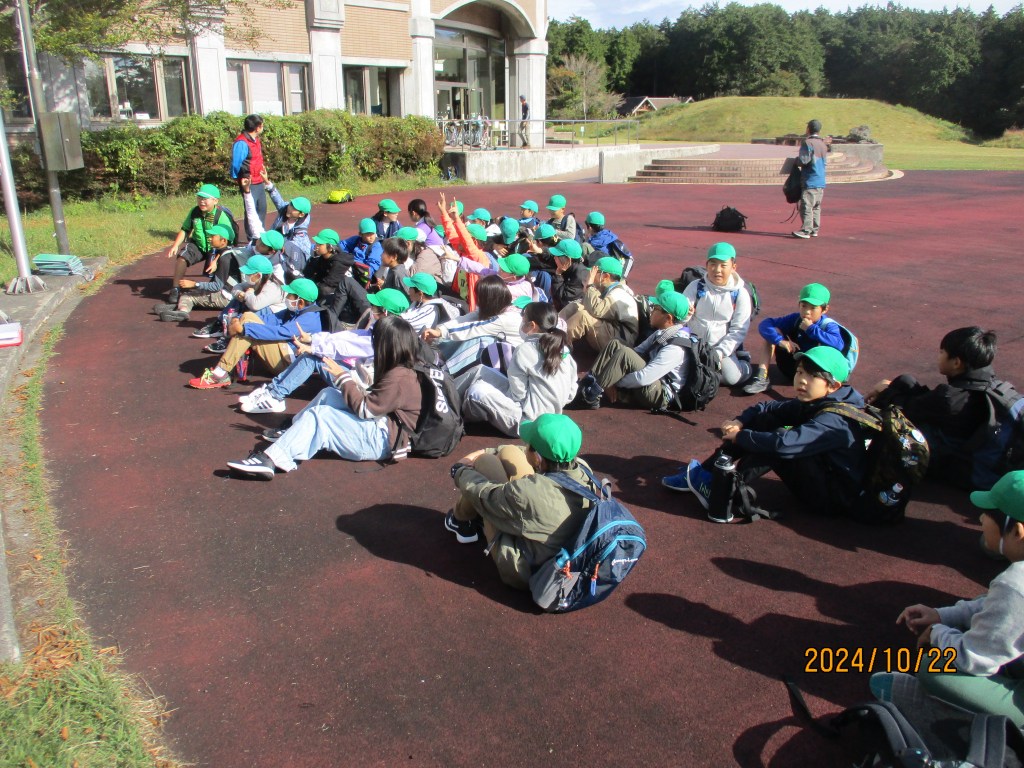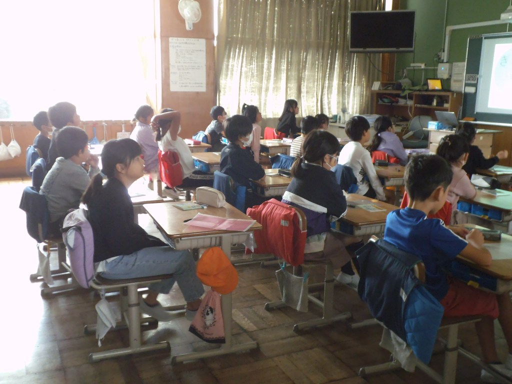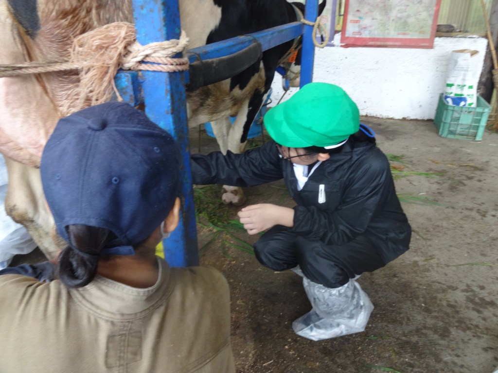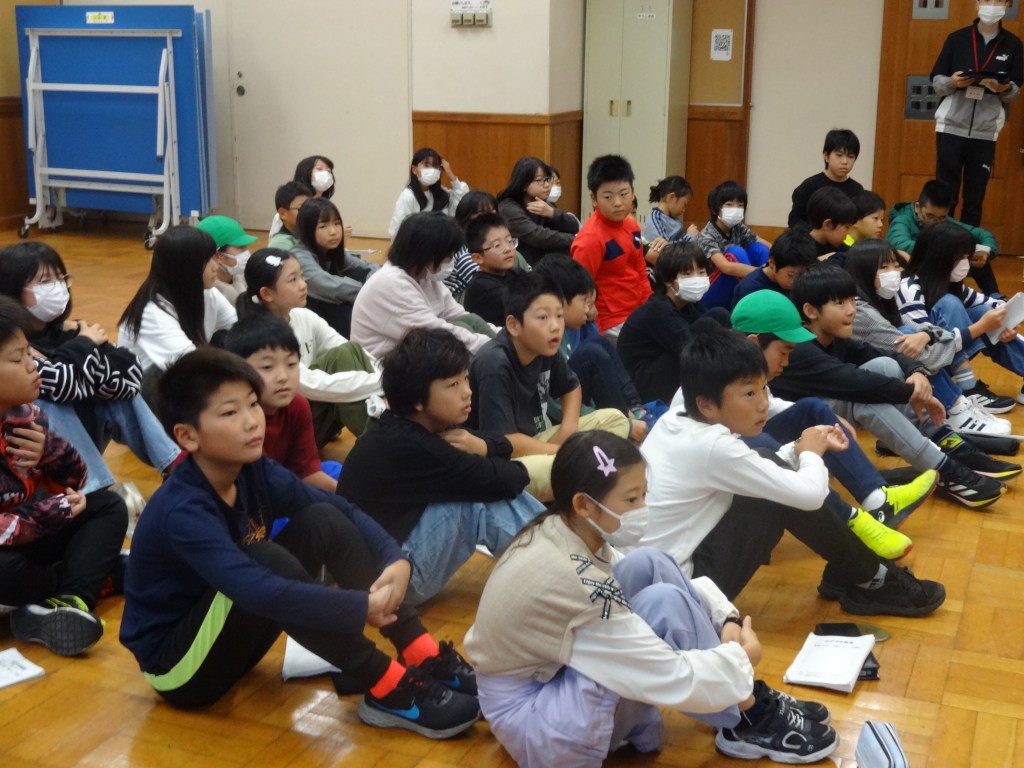 5年生が県立朝霧野外活動センターへ行き、大自然の中で活動してきました。1日めは天候にも恵まれ朝霧の地域をコマ地図を頼りに探検しました。初めて歩く道は不安でしたが、仲間と協力して全員ゴールできました。夜はキャンプファイヤーで楽しみました。山の神も登場し、火を囲んで歌ったり、踊ったりして1日の振り返りながら、友達と活動しました。2日めはあいにくの雨模様でしたが、松下牧場へ出かけ、酪農体験、バダー作りなどを楽しみました。どの活動にも精一杯取り組む子供たちは、この2日間で自分たちで考え、判断する力をつけてきたように思います。