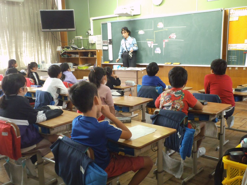学級閉鎖で延期になっていた交通安全教室が行われました。自転車に乗る時の注意や点検の仕方、正しいヘルメットのかぶり方などを学びました。自転車も車と同じ、信号機の色を意識して走行すること、歩道を走行する時は歩行者に気をつけることが大切であると改めて感じていました。