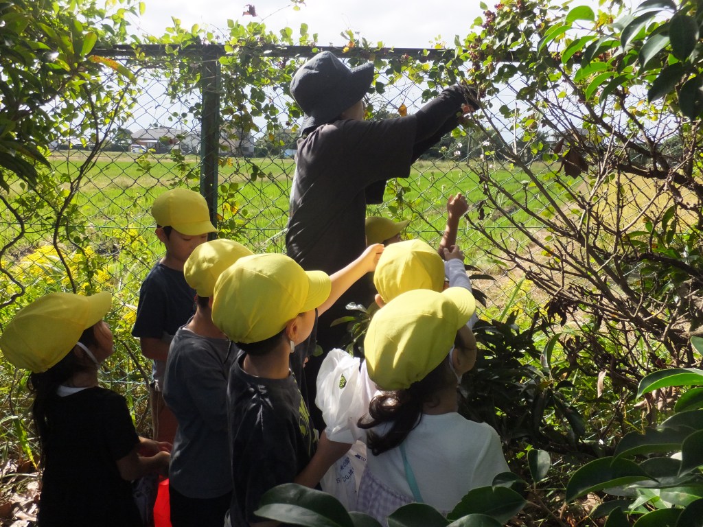 生活科の学習で校庭の自然を観察しています。春、夏と観察しながら季節の変化を感じています。今回も観察に出かけると夏とは違う自然を発見!子供たちからは「秋を見つけた」と次々と声が上がってきました。