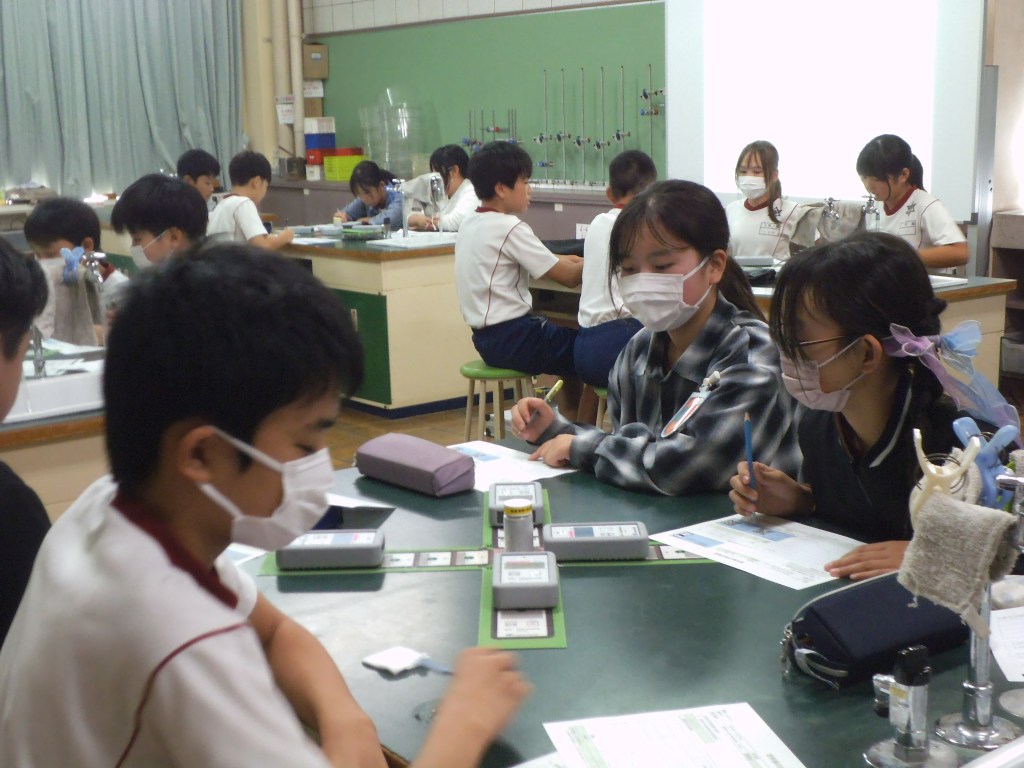 今年も静岡大学の教授を講師としてお招きをし、放射線について学びました。放射線は私達の周りに存在していること、多くの放射線を浴びないよう離れること、放射線は比重の大きなものほどシャットアウトできることなどを学びました。実際には見ることができない放射線を霧箱を使って見て、それぞれ驚いていました。