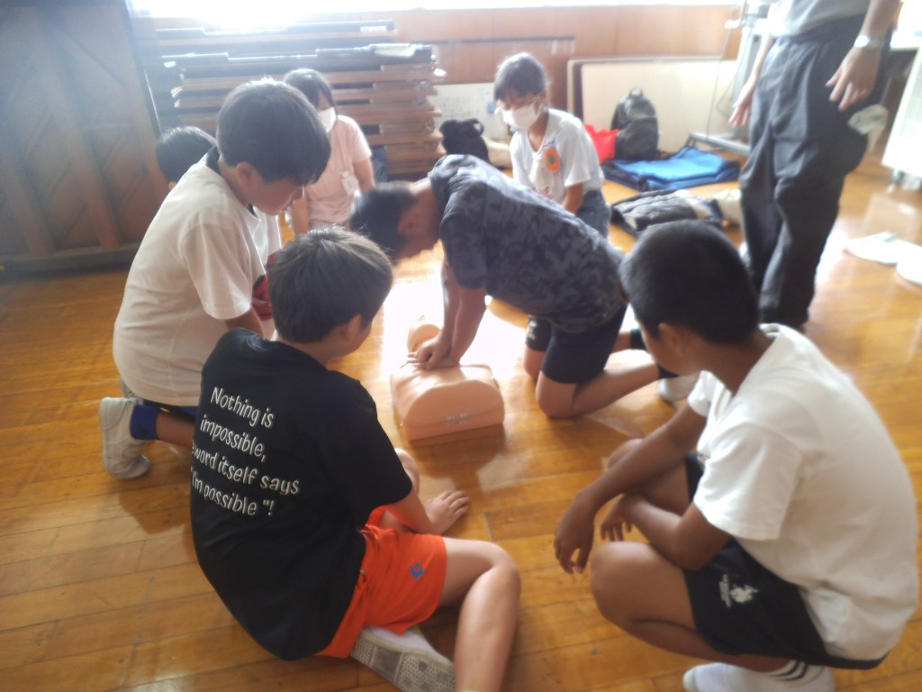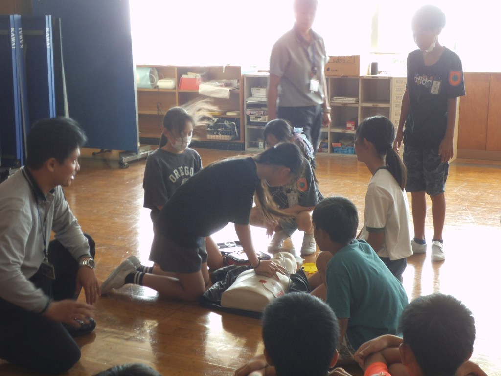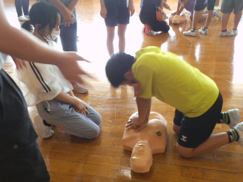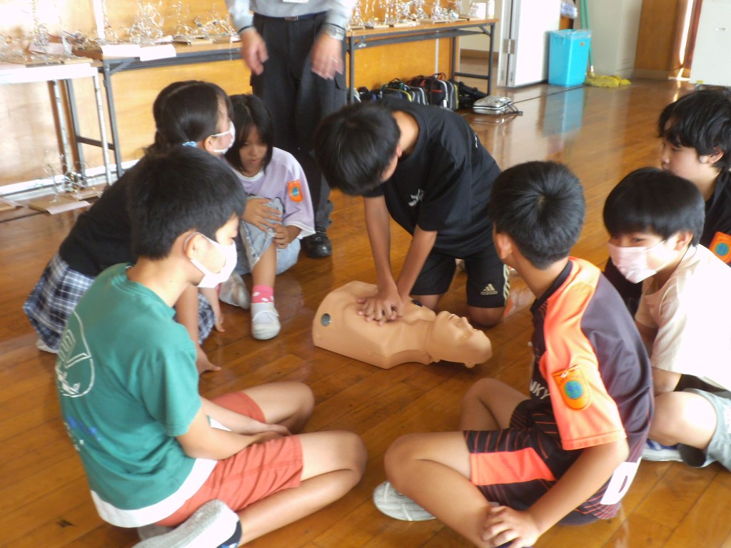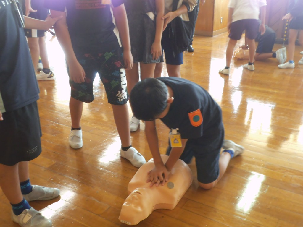 アルソックの方を講師にお招きをし、6年生がAEDを活用した心肺蘇生の訓練をしました。いざという時にどのように、声をかけるのか、誰にどのように救助を求めるのかなどを教えていただきました。また、模型を使って、実際に心肺蘇生を行いました。思ったより力を入れることに驚いていました。さらにAEDは子供でも使うことができることを知り、もしもの時に自分が動こうという気持ちになりました。