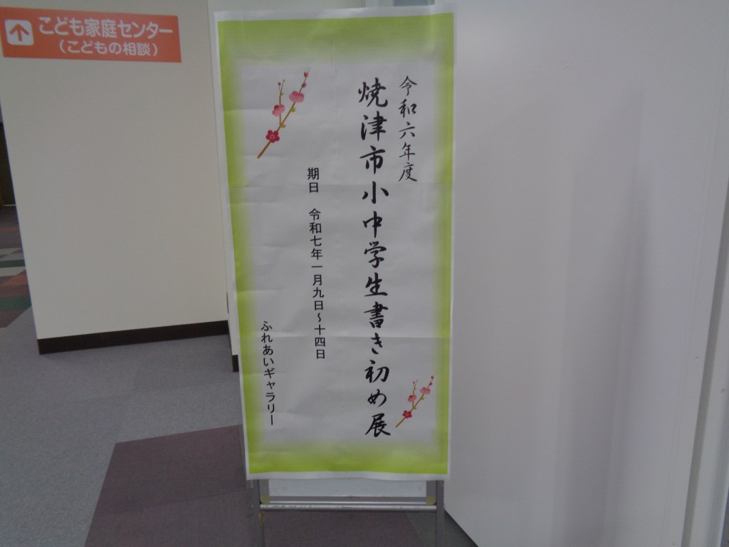 焼津市内の書き初め展が焼津市ふれあいギャラリーで開催されています。市内13小学校、9中学校の児童生徒の作品が展示されています。本校からも代表児童の作品が展示されています。3連休もありますので、ぜひ、お出かけください。