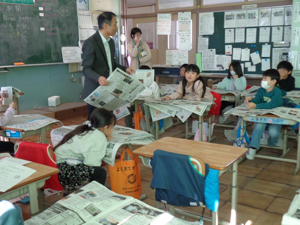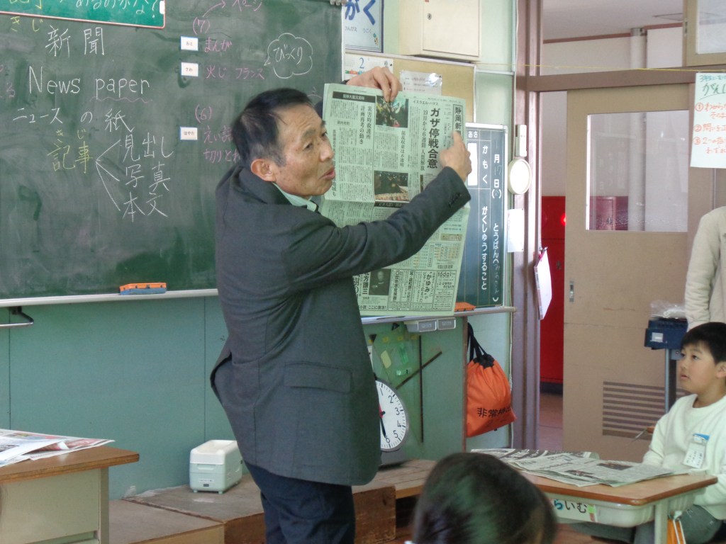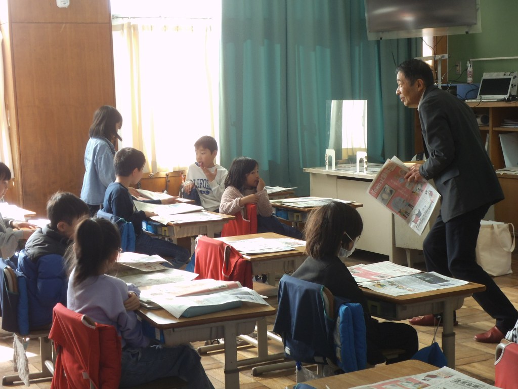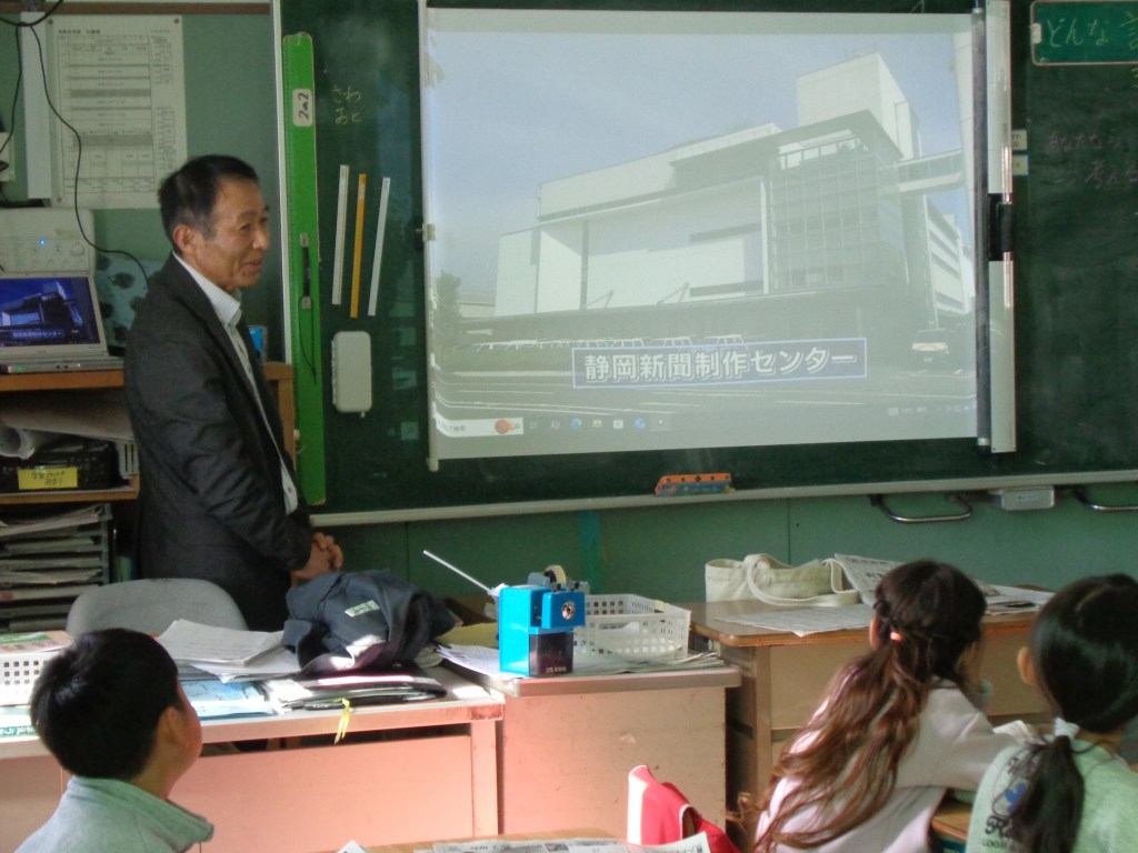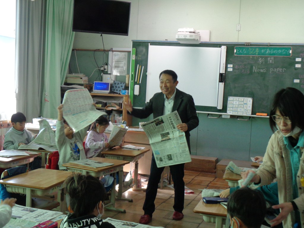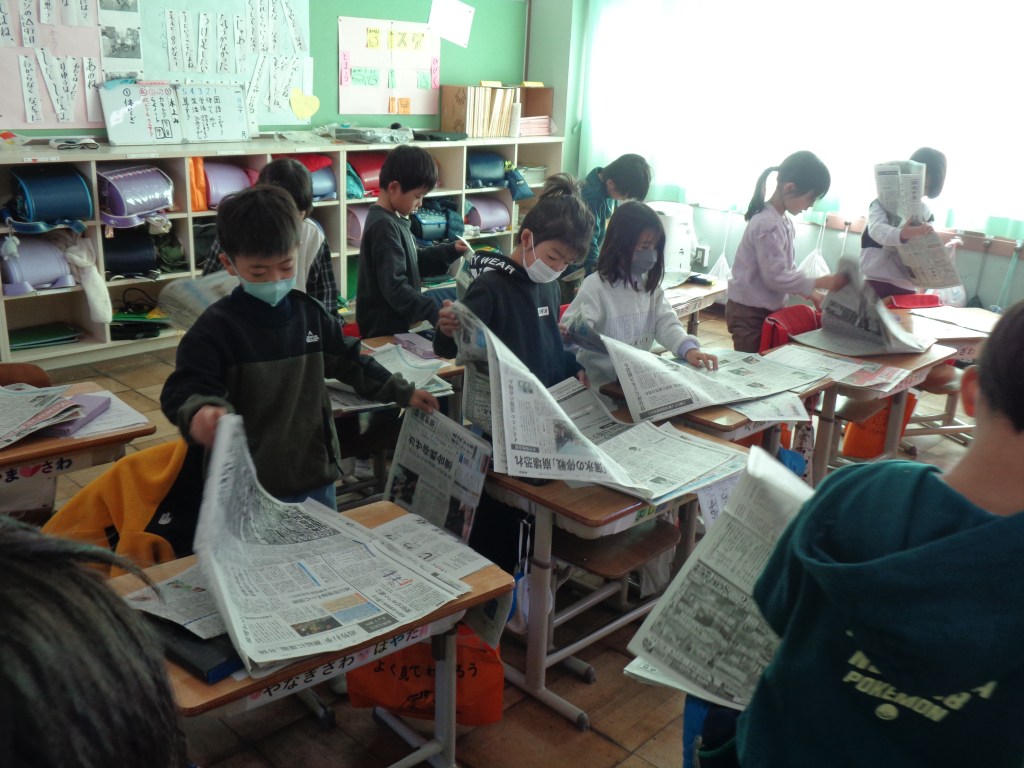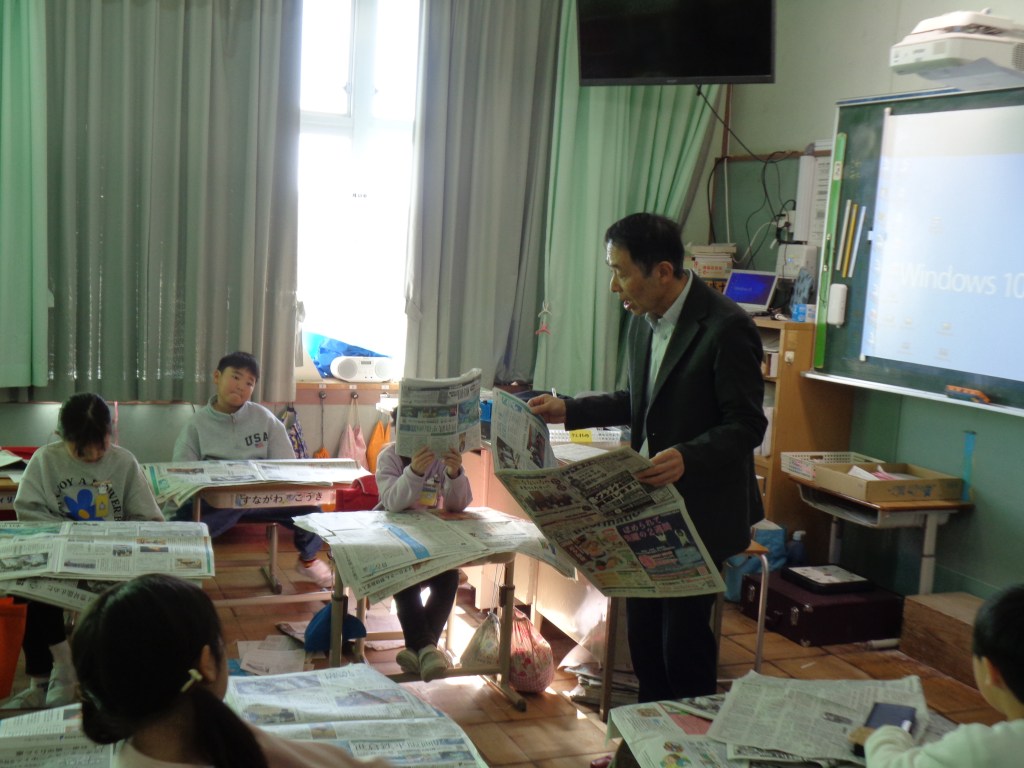 2年生は、NIEコーディネーターの矢澤先生を講師にお招きし、新聞の読み方や新聞のおもしろさのお話を聞きました。インターネットの普及に伴い、家庭での新聞の普及率が下がっています。新聞はどの家にもある時代は終わりました。そのため、今日、矢澤先生から配布された新聞は子供たちにとっても、とても新鮮なものに感じたようです。静岡新聞を広げ、見出し、本文、写真に構成されている記事をそれぞれに読み、新聞にはいろんなことが書かれており、2年生の自分たちにもわかるものがあると感じ、楽しそうに読んでいました。