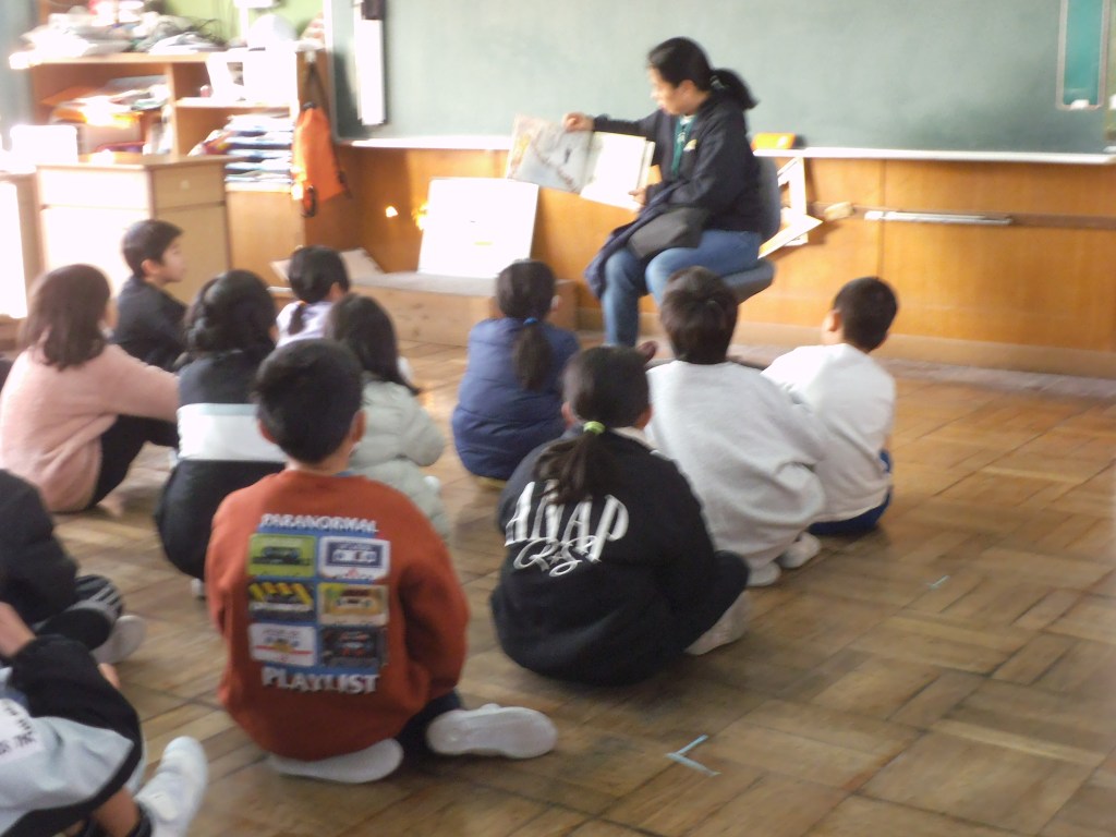 今日は、ボランティアの皆さんによる読み聞かせの日。朝から子供たちは楽しみにしています。本を開きながら、語りながら、プロジェクトに映しながら、様々な手法で子供たちに読み聞かせをしてくださいました。聞いている子供たちの表情からお話の世界に入り込んでいることが伺えました。ありがとうございました。