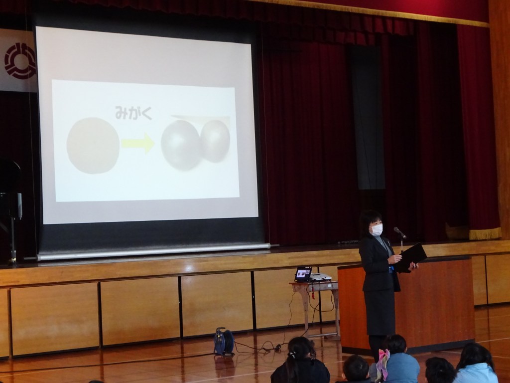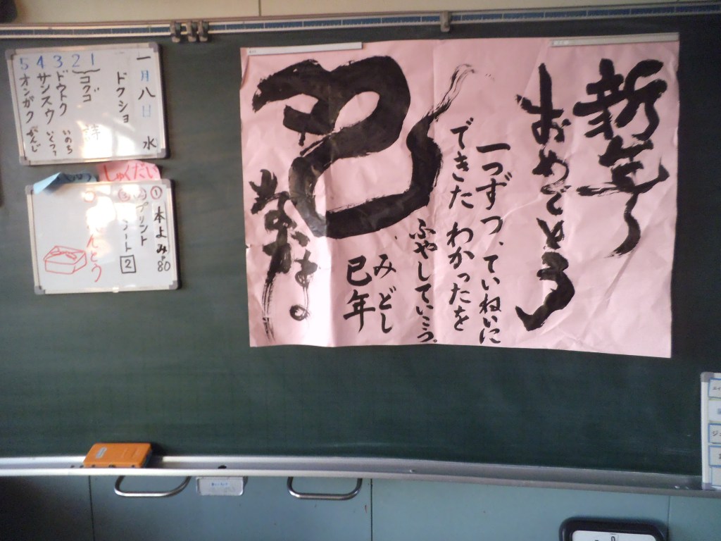 登校してきた子供たちの顔はとてもよい笑顔で、元気よく挨拶をしてきました。子供たちを明るく迎えようと担任はそれぞれに「おはよう黒板」を仕上げました。集会ではありがとうの意味について話があり、各学年の代表からは新年の豊富の発表がありました。仲間の話に耳を傾け真剣に聞く子供たちの姿に成長を感じました。
