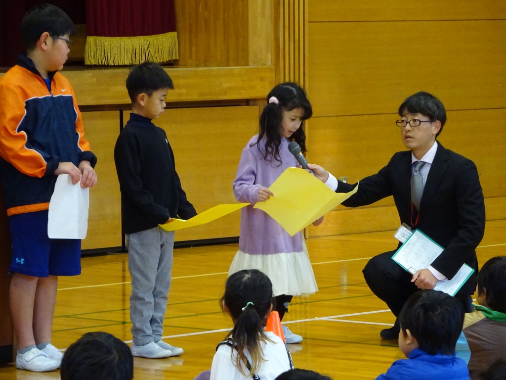 最後に4年生の先生から1月にモンゴル国より子供たちが焼津市を訪問する際、大井川東小学校へ来ることが知らされました。4年生が社会科の学習として交流することになりますが、廊下などで会った時にはモンゴル語で挨拶をしてみようということでモンゴル語で「こんにちは」の練習をしました。当日の挨拶が楽しみです。