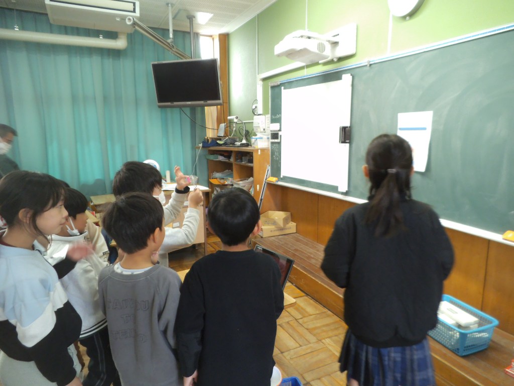 最終日の今日は、3年生のペア4年生を招待しました。3日めともなると、大勢の仲間が遊んでくれたので、少々痛みも見えていましたが、3年生のわかりやすい説明に、4年生も楽しく遊んでいました。4年生の中に、もっと遊びたかったのか、他の学年の子も混ざっていました。楽しい3日間の理科ランドでした。
