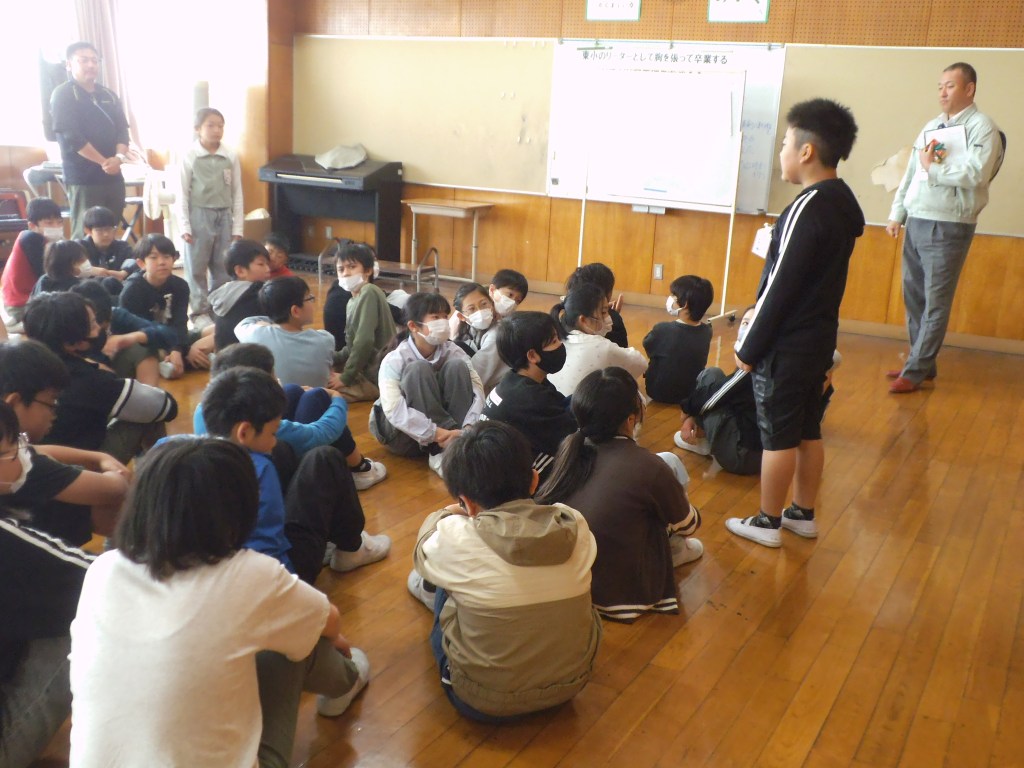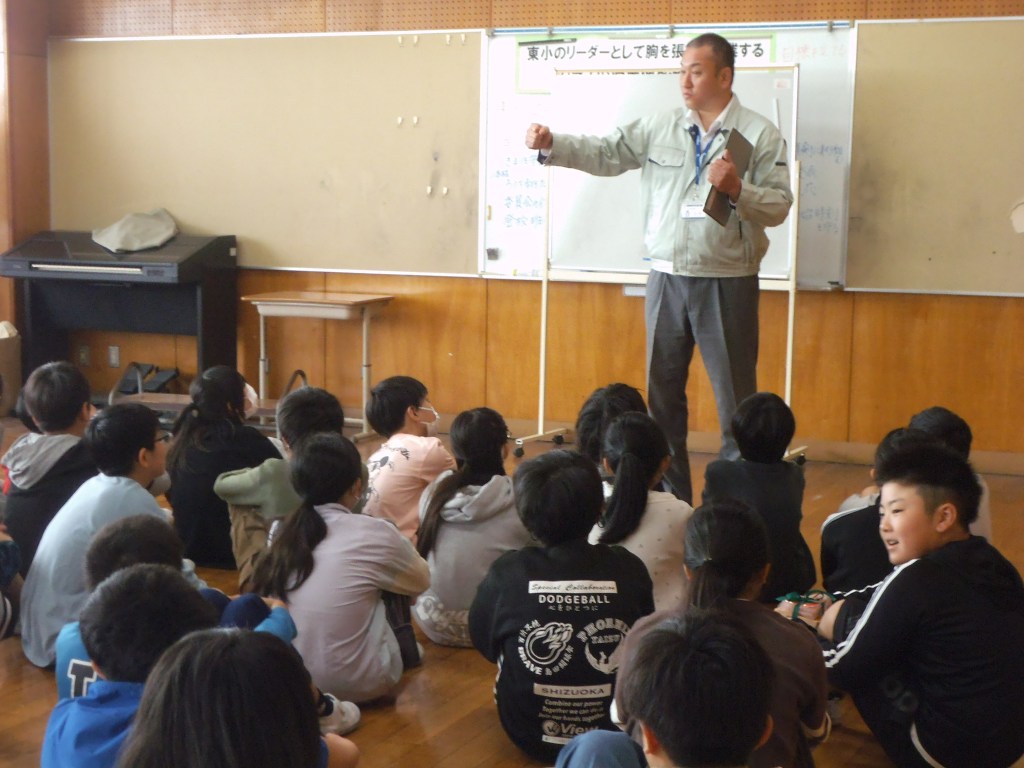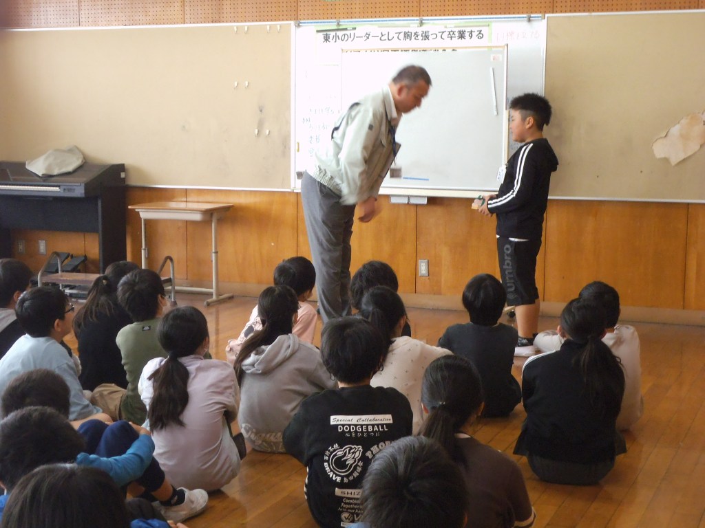 毎年、6年生に対して、交通安全リーダーとして、リーダーワッペンが配付されます。本年度はくらし安全課の職員の方にご来校いただき、なぜリーダーワッペンが贈らるのか、市内の交通安全状況は6年生に対する期待などをお話いただきました。6年生は、「低学年が安心して登校できるように声をかけていきます。」「交通安全に気をつけて、低学年を連れていきます。」などの決意を持ちました。これからも安全に登下校できるよう、リーダーとしてお願いします。