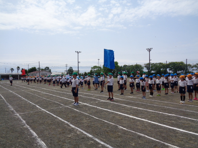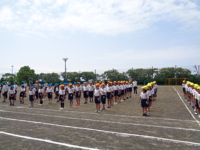 5/23 運動会総練習 天気が心配ですが、31日に予定されている運動会の総練習をしました。自分の動きの確認、係の仕事の確認などをしました。開会式の練習では、歌声リーダーの4年生が運動会を盛り上げるための歌の練習を呼びかけました。本番さながら元気な歌声が運動場に響きました。 関連