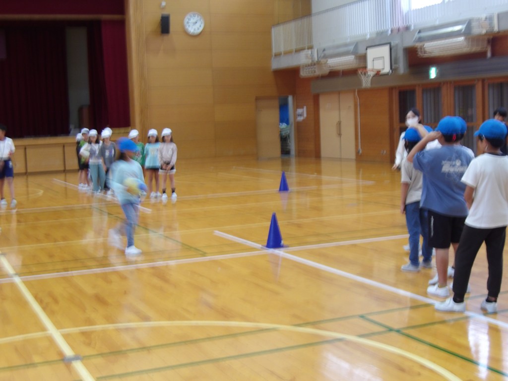 体育委員会企画のドッジボールラリーが始まっています。今日は3年生が自分たちの記録に挑戦しました。普段のドッジボールと違い、相手がとりやすい球を投げるため、はじめはうまくキャッチができなかったのですが、回数を重ねる事にこつを得て、ボールをつなげていくことができました。