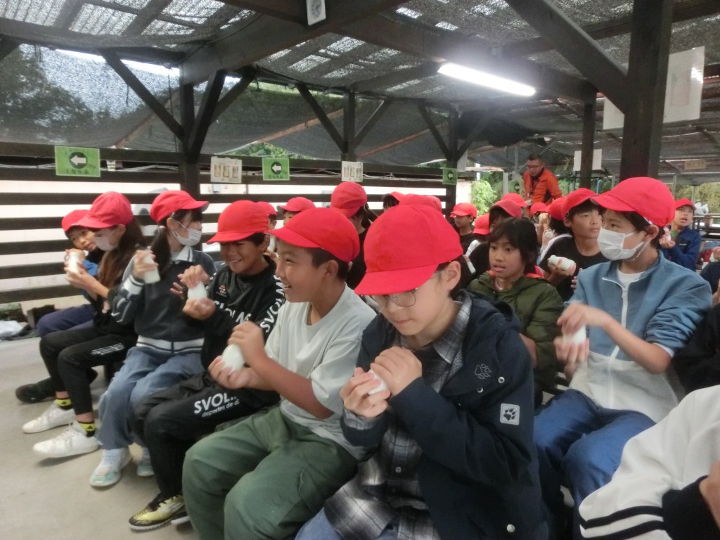 今年も5年生が朝霧野外活動センターにてかがやき教室(自然体験教室)を1泊2日で行ってきました。あいにくの空模様でしたが、すべてのプログラムをやり遂げてきました。大自然の中での活動は普段の生活と大きく違い、自分たちで見つけ、考え、正しく判断し、行動する力が求められています。また、たくさんの距離を歩きながら散策する活動は非常に体力も必要となります。そんな活動を仲間と協力しながら、やり遂げてきました。大自然の中を歩いたり、電気のない夜の自然の中でキャンプファイヤーを楽しんだり、牛の乳搾りなど酪農体験をしたりとたくさんの経験をしてきました。