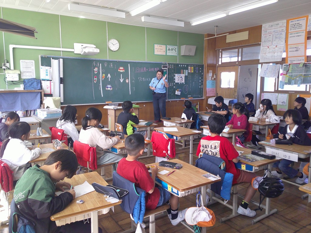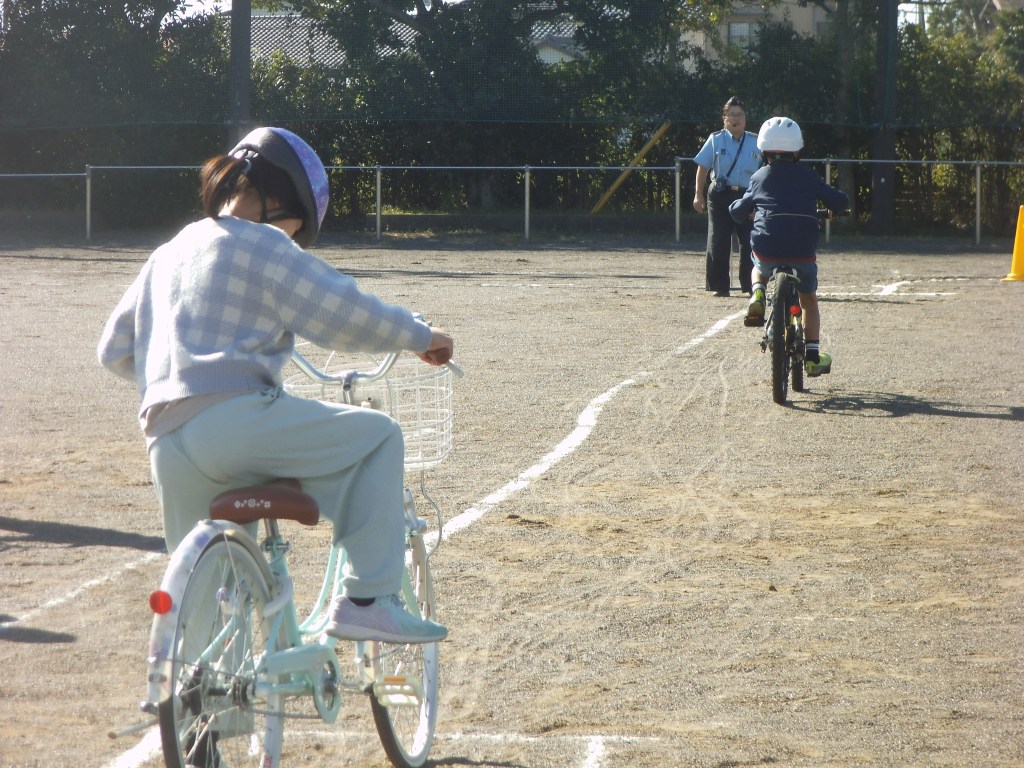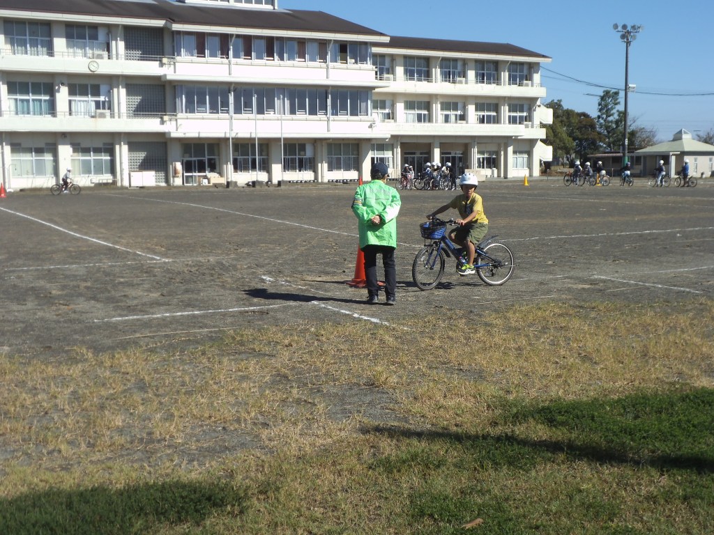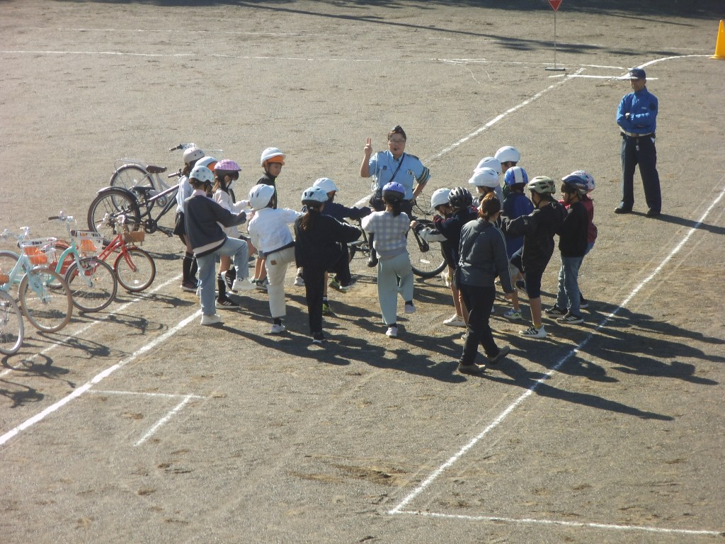 4年生は、自転車免許交付に向けた自転車の乗り方講習を受けています。今年も交通指導員の皆さんのご指導を受けながら、安全確認の仕方やどの辺りでブレーキをかけたらよいかなどを学びました。最後には、全員が自転車免許をもらい、安全に乗っていこうという気持ちになりました。