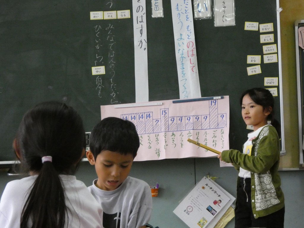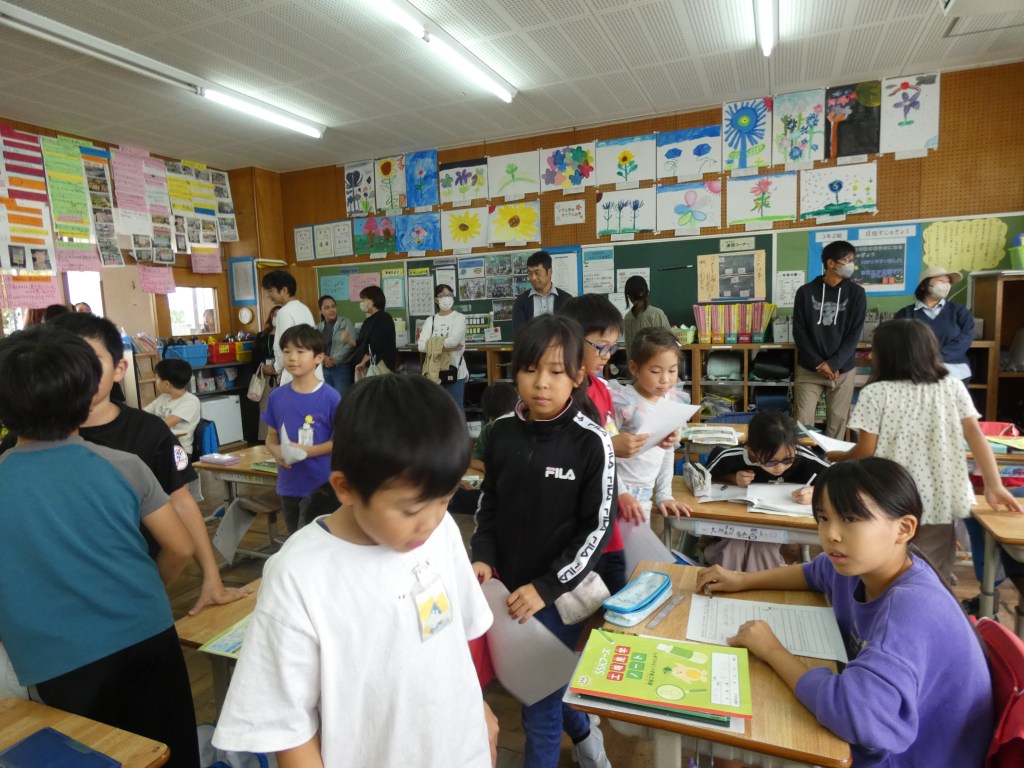 突然の大雨に、吹く風も冷たい日となってしまいましたが、高学年の教室では、子供たちの元気な声と笑顔がある授業が行われていました。参観にきてくださった保護者の方も大勢いらっしゃり、子供たちの頑張る姿を見ていただくことができました。