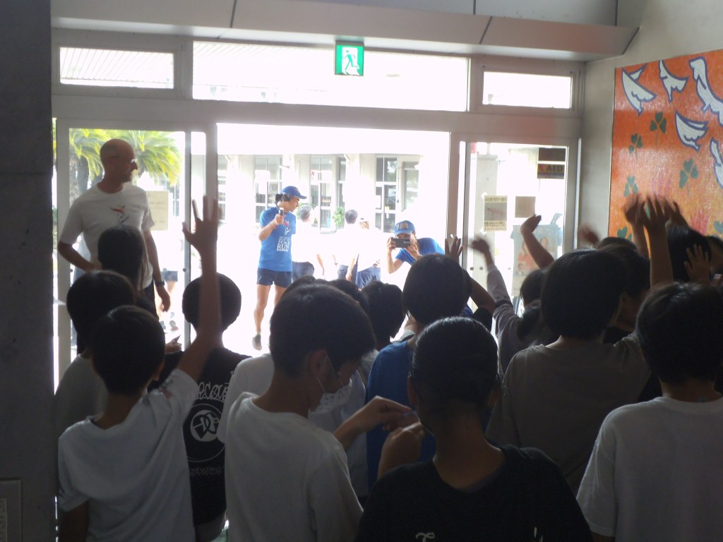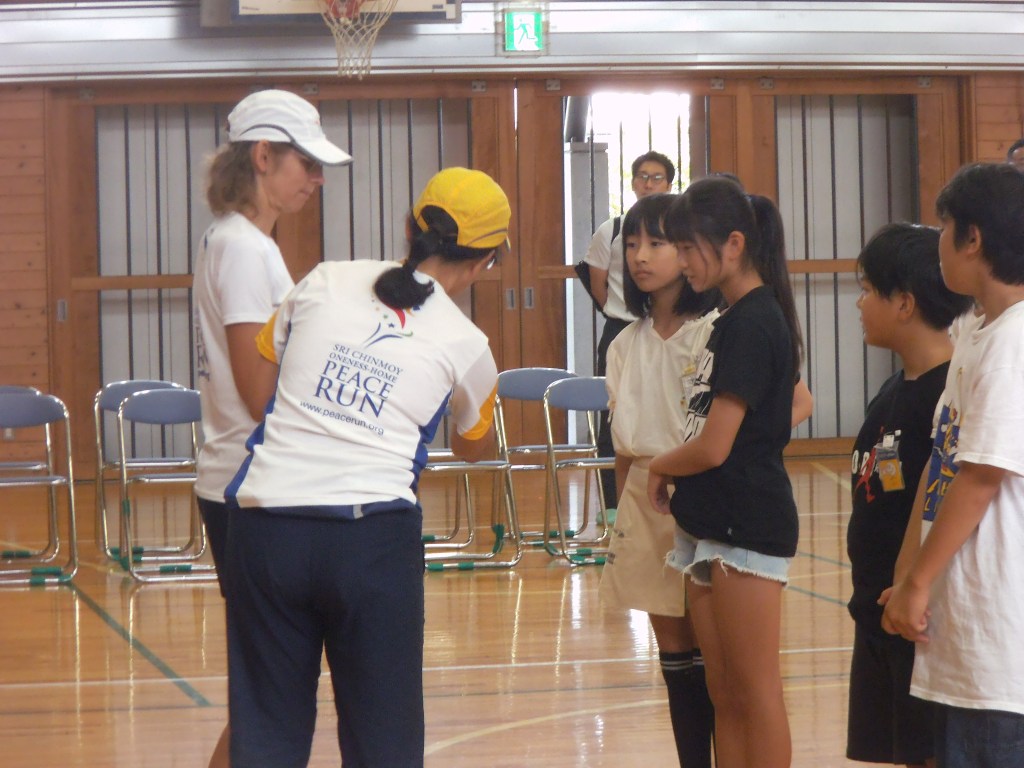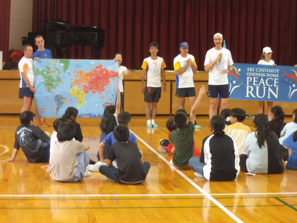 シュリチンモイ・ワンネスホーム・ピースランという平和へのメッセージをトーチリレーをしながら世界中を走る活動があります。その活動をしている方々が、京都を出発し、本日焼津市をゴールに走り、ゴール時点での学校で交流活動をしたいという依頼がありました。本校の5年生は国際交流活動の一つとして、この依頼を受け、本日、ピース・ランの方々と交流しました。どの国の人なのかを当てるクイズや、ゲーム、一緒に走るなどの活動を一緒に行いました。子どもたちからは校歌のプレゼントをしました。短い時間の中でしたが、温かな空気の中、楽しい交流活動が行われました。