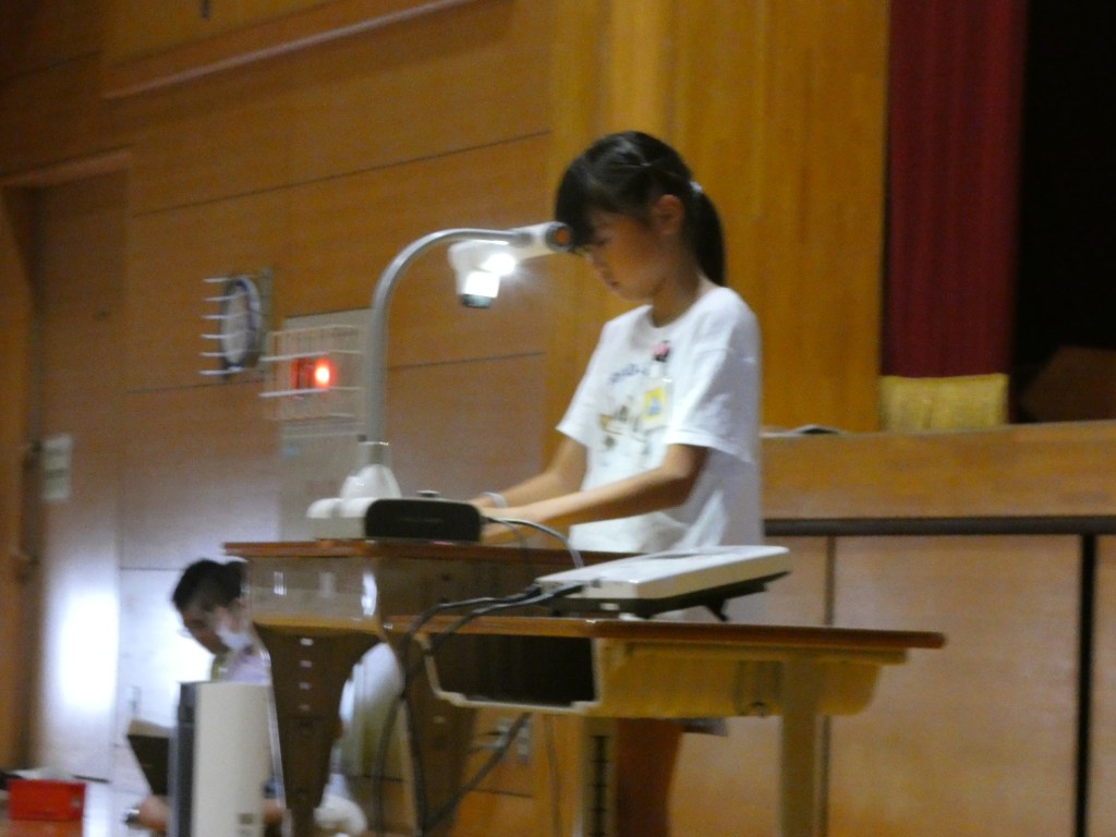 今日は低学年の発表がありました。1年生は国語で学習したことをクイズにしての出題や、鍵盤ハーモニカ、フラフープ、けん玉の発表がありました。2年生は早口言葉や折り紙、今、2年生で頑張っていることの替え歌披露がありました。どの子も精一杯発表しました。見に来た人からたくさんの拍手もあり、今日も温かなフェスティバルでした。