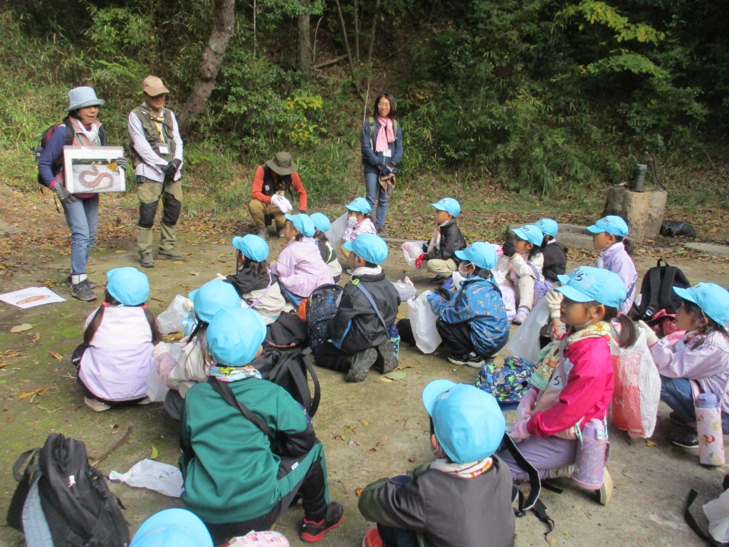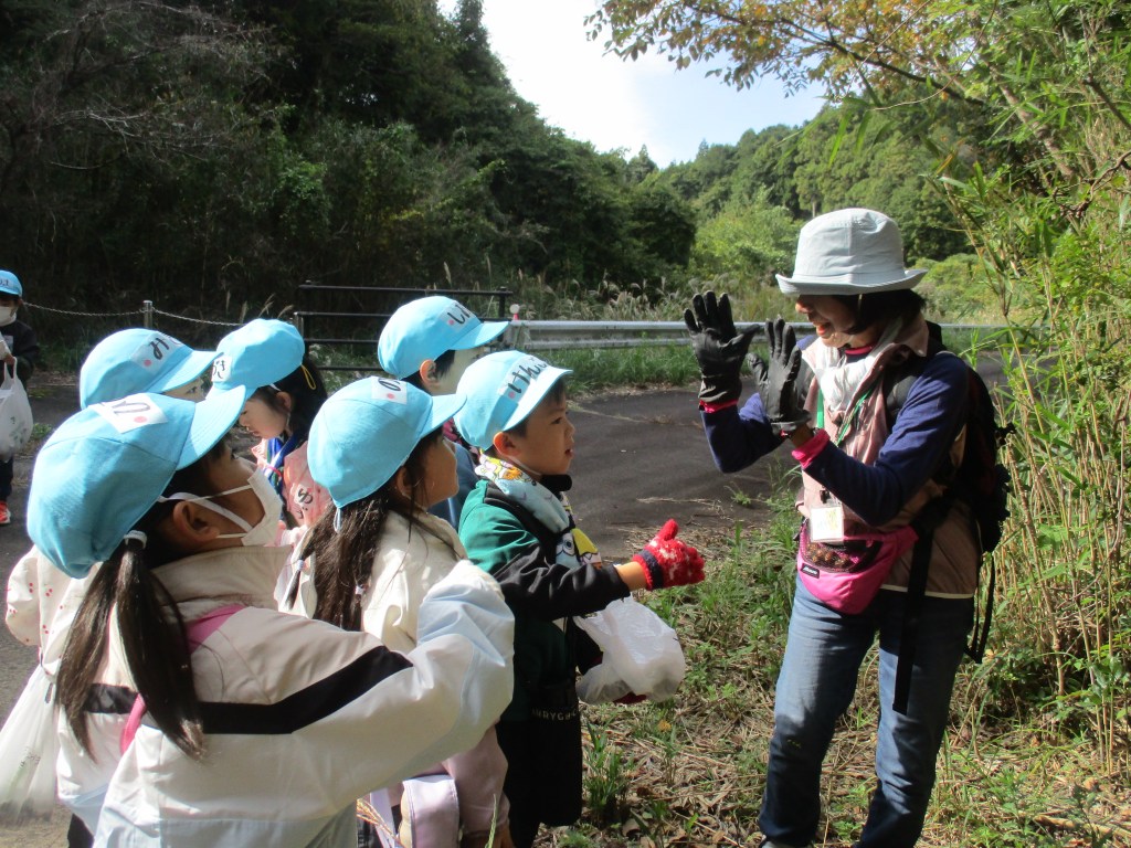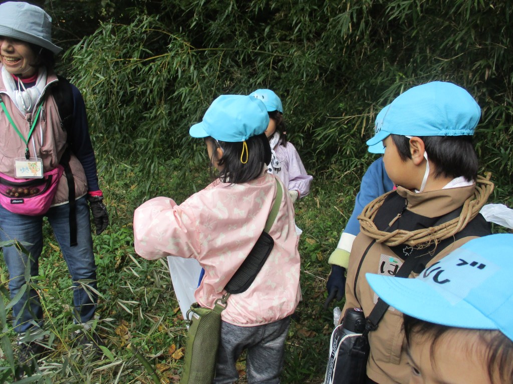 今年も榛原ふるさとの森の体験に参加することができた1年生。森の中へ秋を見つけるたんけんに出かけました。山道、草むら、普段と違う環境でしたが、最後まで自分の力でたんけんし続けることができました。たくさんの宝物を見つけ、袋いっぱい集め、満足そうに戻ってきました。