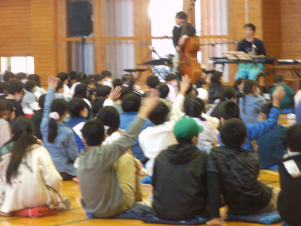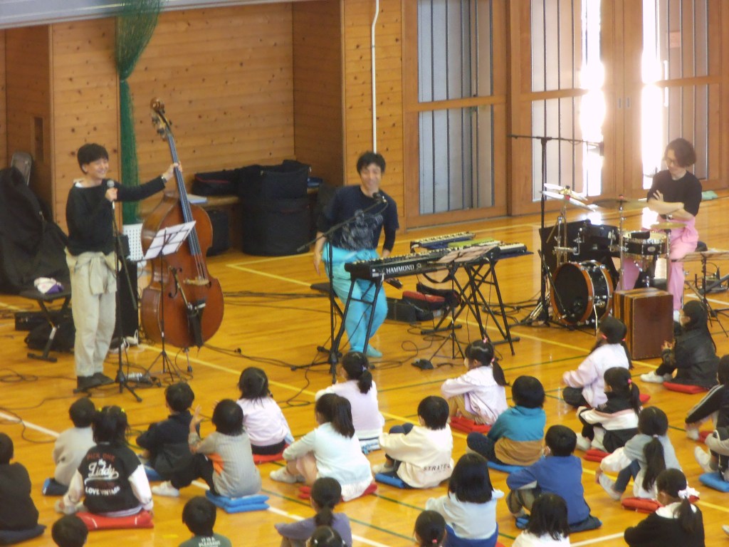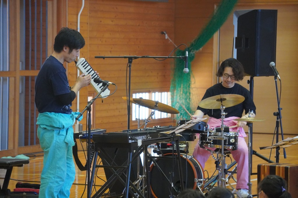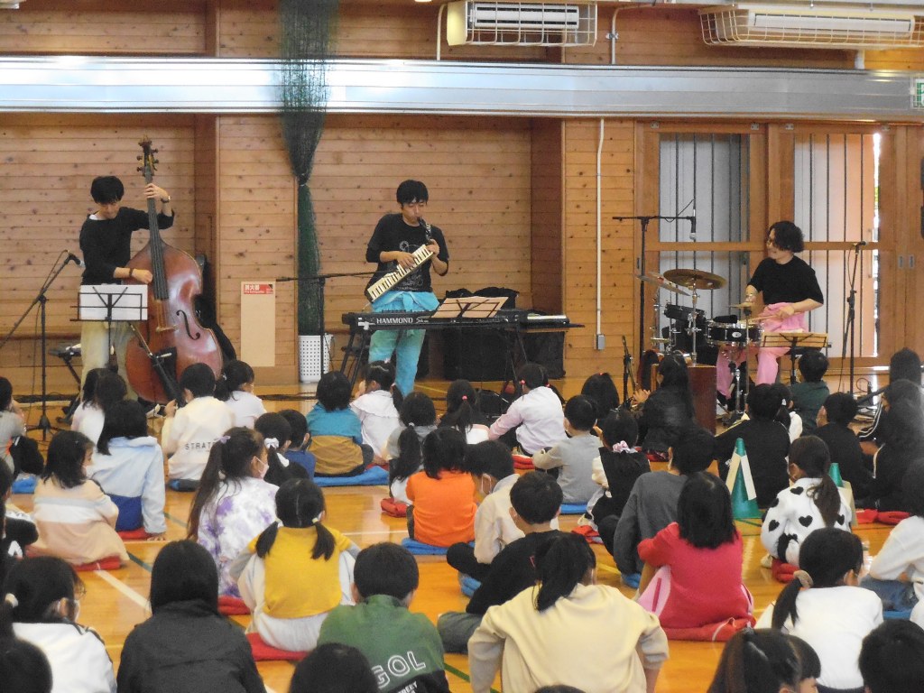毎年、芸術の秋に鑑賞教室を行っています。今年は、音楽に触れ合う年として、鈴木楽器さんのご協力のもと「ケンハモーション」さんによる音楽鑑賞とトークを行っていただきました。みんなが使っている鍵盤ハーモニカを中心とした演奏にどの子も楽しく参加することができました。