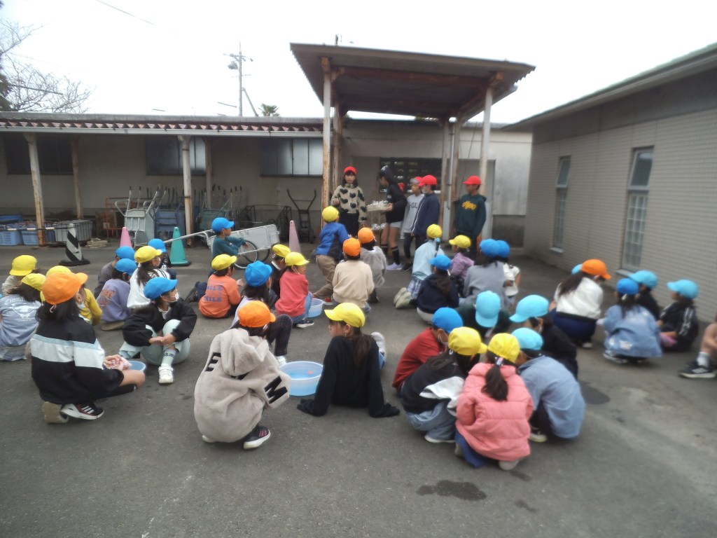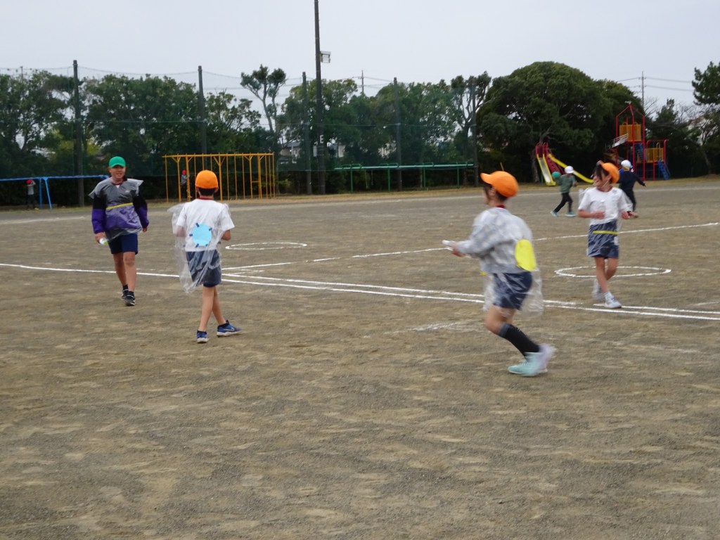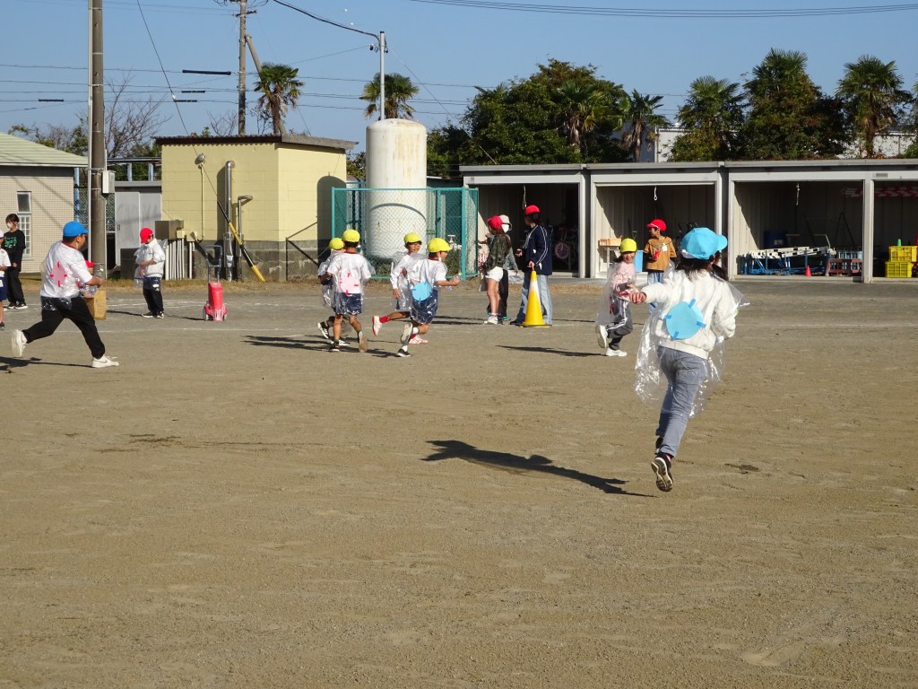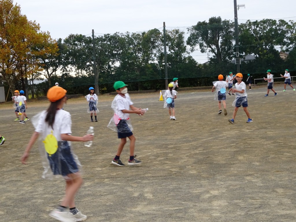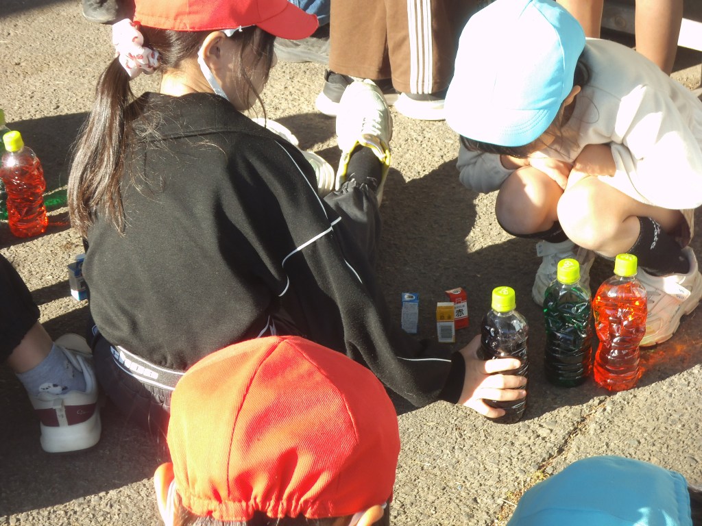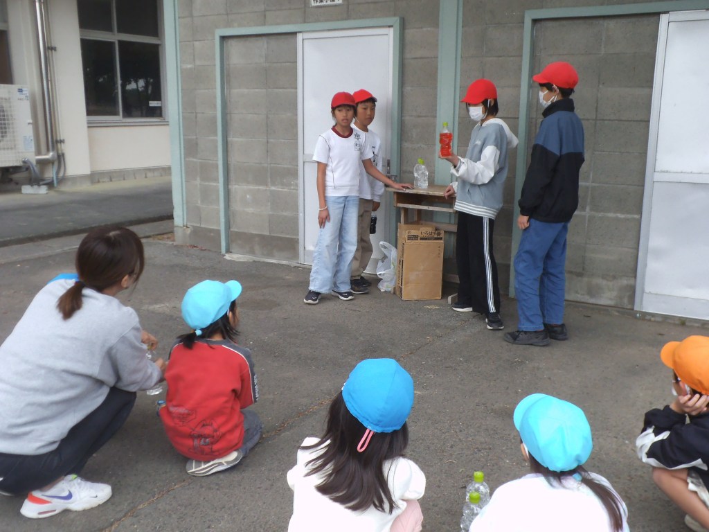 災害用に保管しておいたと思われる期限切れの水がたくさんあるのを発見しました。処理するのは簡単ですが、環境問題について考えている子供たちにこれらの水の処理について考えてもらうことになりました。子供たちはどうしたら有効に活用できるのか、話し合いを重ね、その一つとして遊びに使うことを計画しました。全校児童に呼びかけて、水かけ鬼ごっこ、スーパーボールすくい、色水づくりで遊びました。どの子も5年生が計画した遊びを思い切り楽しんでいました。これらの内容の詳細はしずはま発表会で発表されます。