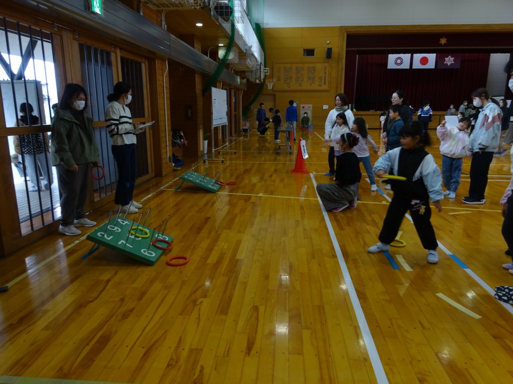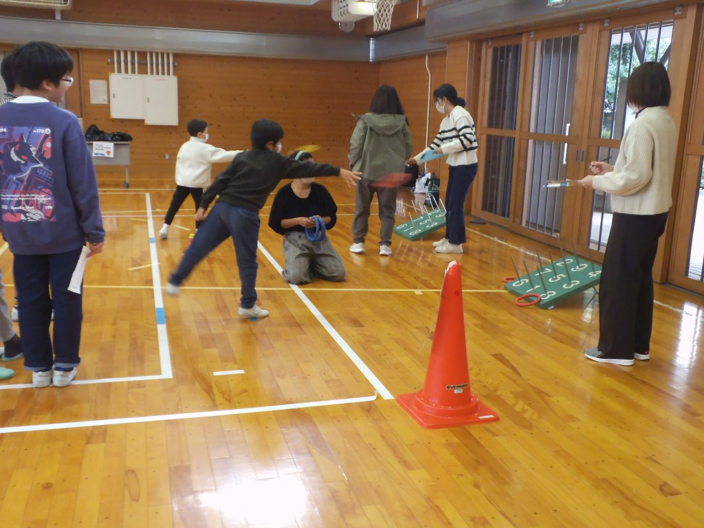 今年はPTA学年部ニュースポーツ体験と郊外生活部の東っ子祭りを一緒に行うこととし、「ニュースポーツフェスタ」を開催しました。大勢の家族が参加し、モルック、ラダーゲッター、輪投げなどの種目に挑戦しました。見ているよりも大変な種目もあり、幼児から大人までみんなで楽しむことができました。