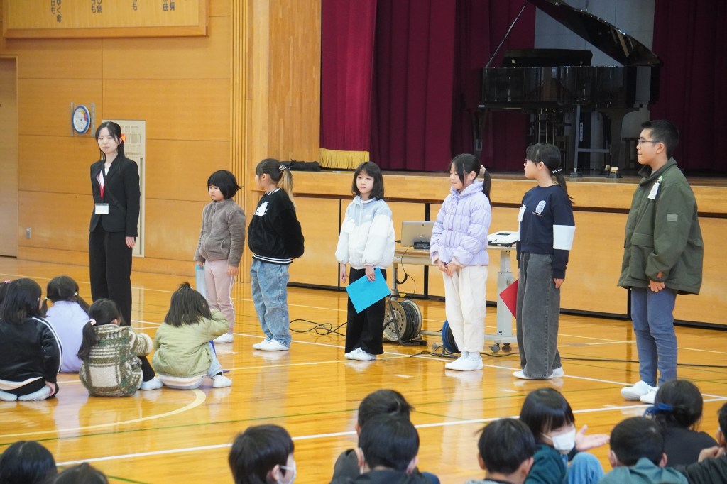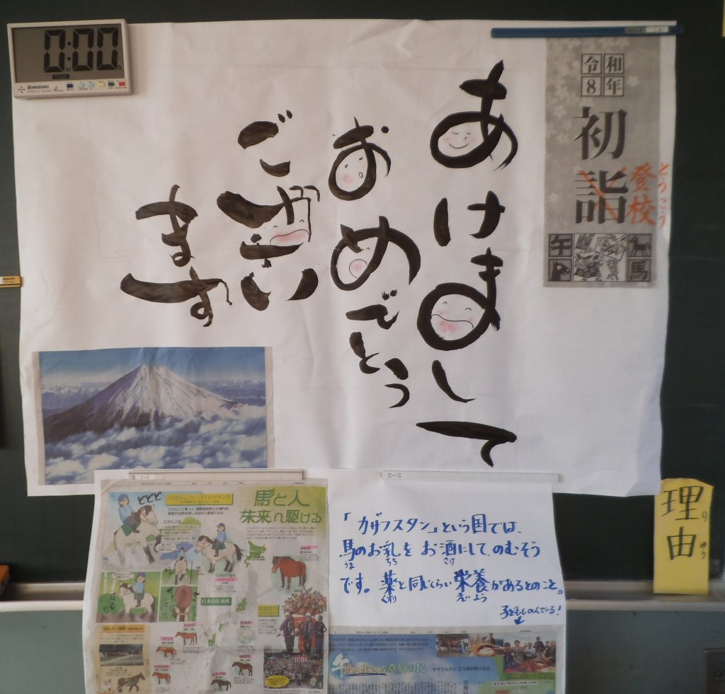 冬休みが終わり、しずはまっ子が学校へ戻ってきました。しんと静まり返っていた学校は一気に活気と笑顔に満ち溢れました。朝、教室に入ると担任の先生が子供たちを迎えるおはよう黒板を仕上げており、どの子もわくわくが高まったと思います。今日は全校児童が体育館に集まって、新年のつどいを行いました。新しい年、新しい「つたえよう」のステージになり、何を目指して取り組むか、確認をしました。また、児童と先生の代表からの新年のめあての発表を聞き、自分のめあても確認しました。交流タイムでは、同じチームになった人と同時に投げたボールをキャッチするゲームをしながら、うまくキャッチできなかったときは、次は頑張るチャンスという意味で全員で「チャンス!」と言うルールで行いました。何人かのグループで声を合わせてボールを投げ、「チャンス!」「ヤッター!」などの声が響きました。相手のことを考えながら投げ、相手のミスを「チャンス!」という言葉に変えて応援する優しさの芽が育ちました。