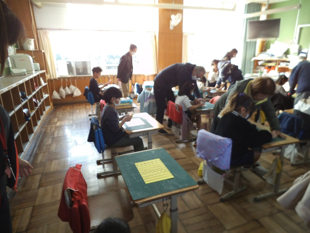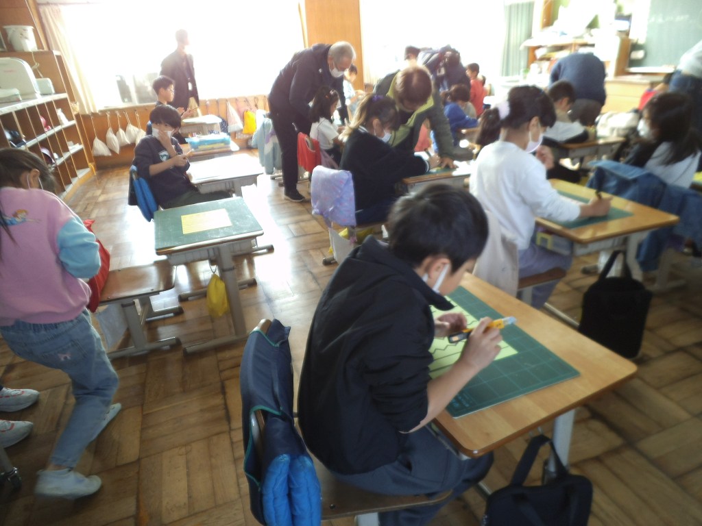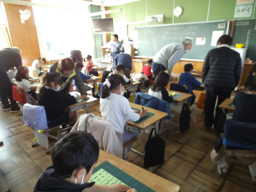 1/13 2年生図工 2年生の図工で初めてカッターナイフを使った活動が入ります。初めて使う子もおり、本年度も民生委員さんの方々のお力を借りて、授業を始めました。力の入れ具合、左手の置き場所、細かいところまで一緒に活動してくださり、子供たちも安心して行うことができました。 関連