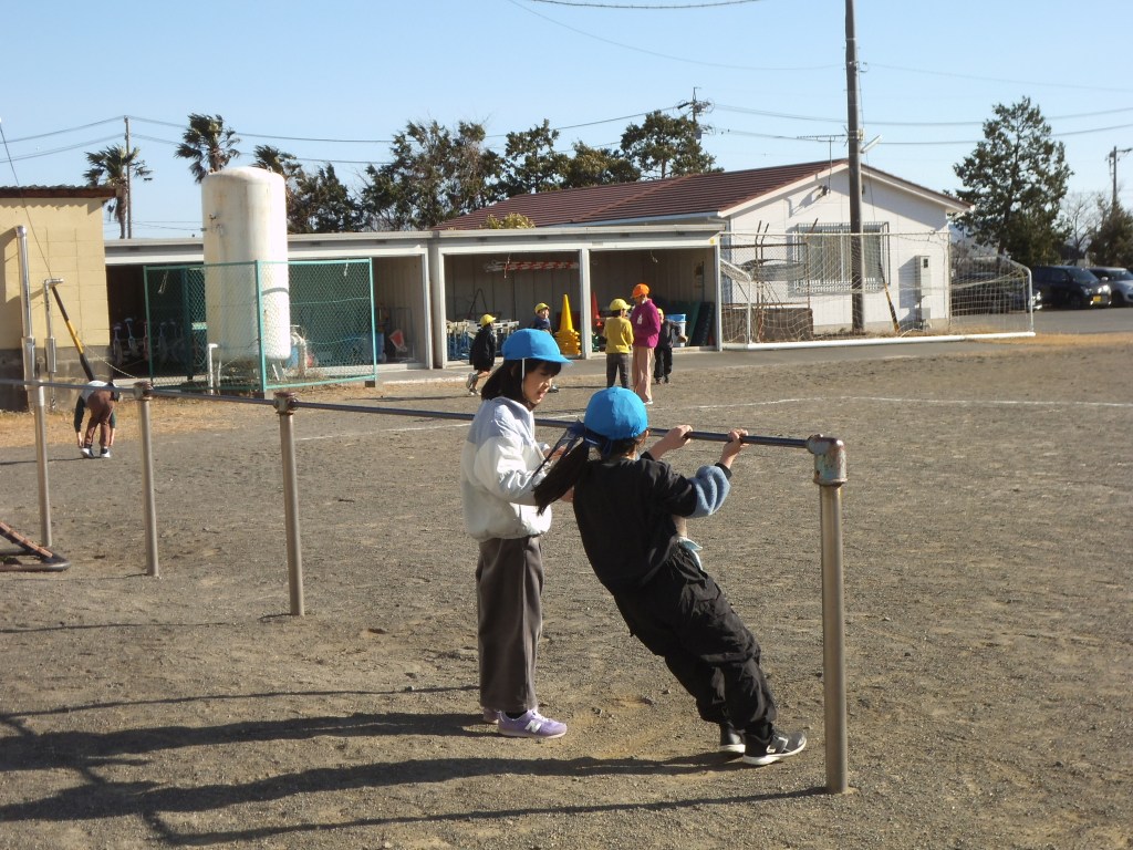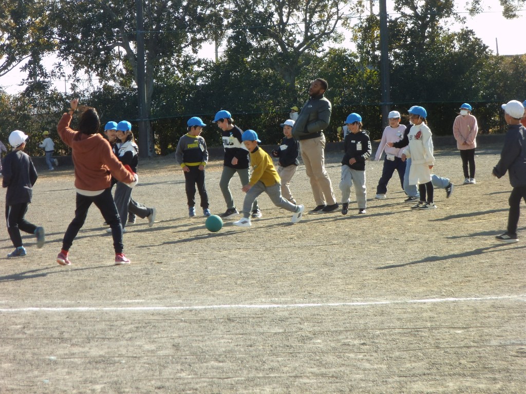 風は冷たくても子供たちには関係無し。昼休みは元気に外へ出て遊んでいます。今日は、3年生がALTの先生を誘ってドッジボールもしていました。子供は風の子、そのものでした。