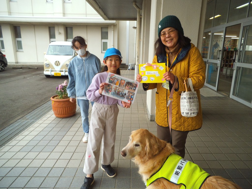 本年度も終わりに近づいてきました。今日は、ウォークの見守り最後の日となってしまいました。最後とわかると子供たちはウォークにこれまでのお礼を告げました。代表で3年生がウォークと鈴木さんにありがとうメッセージを贈りました。4月からまたお願いします!
