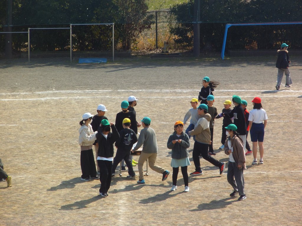 6年生が学習したことをもとに、全校遊びを計画し、2日間にわたり、6年1組が実施しました。その名も「爆走!スカウトマン!!」全学年をランダムに集めたチームを作り、円の中心に置かれた指示の人をスカウトしてくるゲームです。高学年は低学年のフォローをしながら楽しそうに活動していました。1日めの反省を活かし、2日めの今日はさらにバージョンアップしたゲームとなっていました。