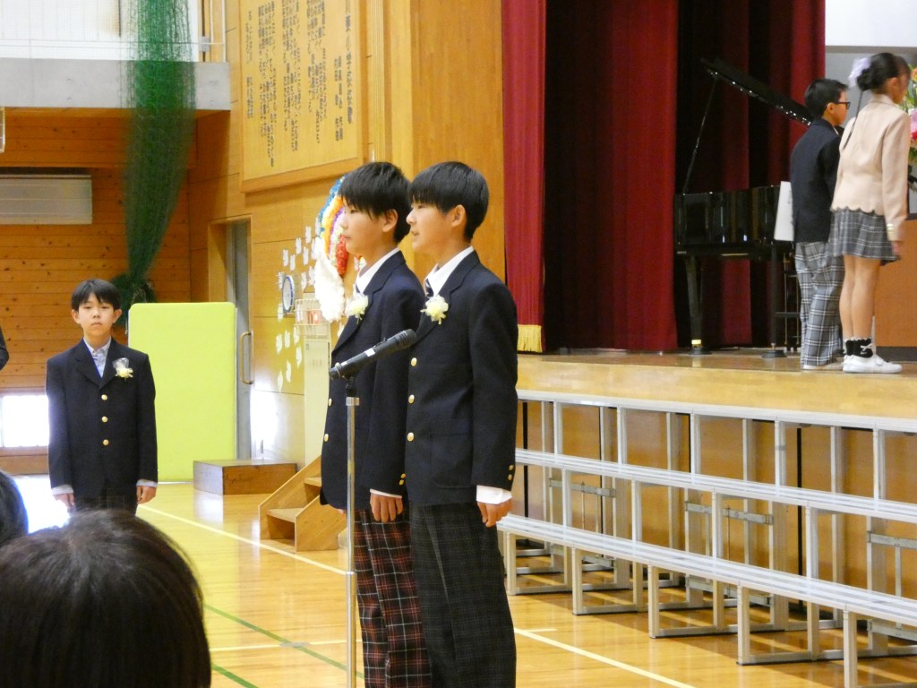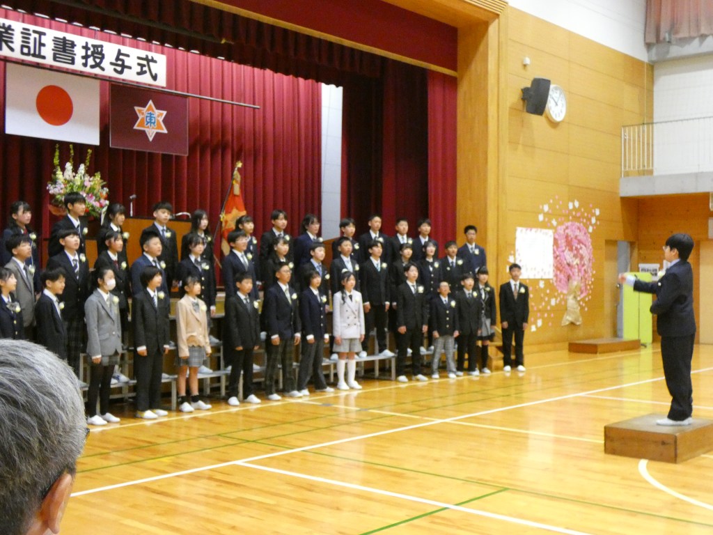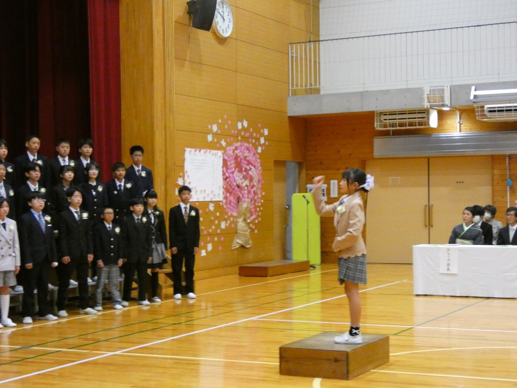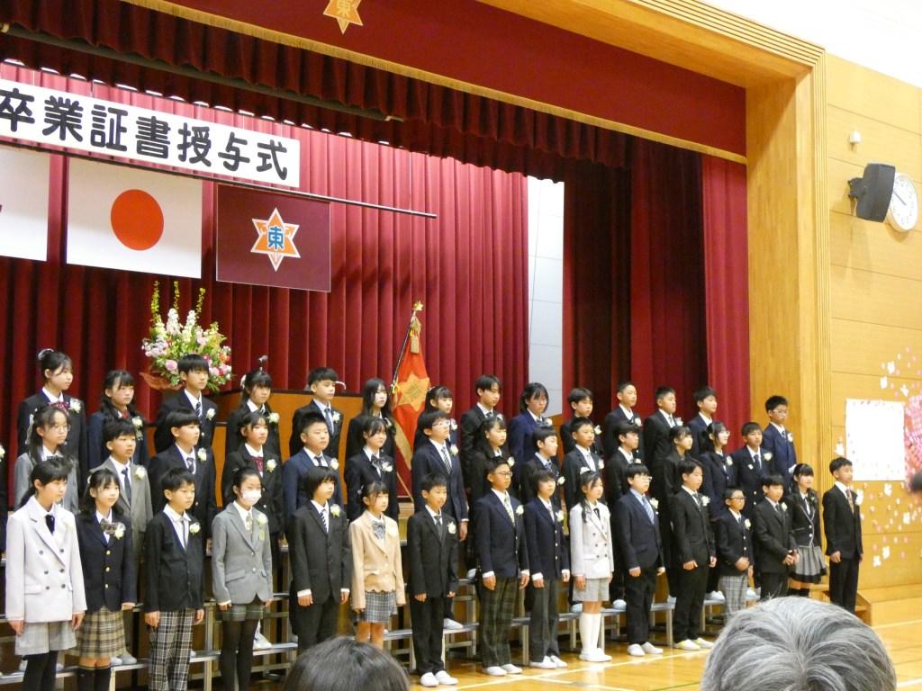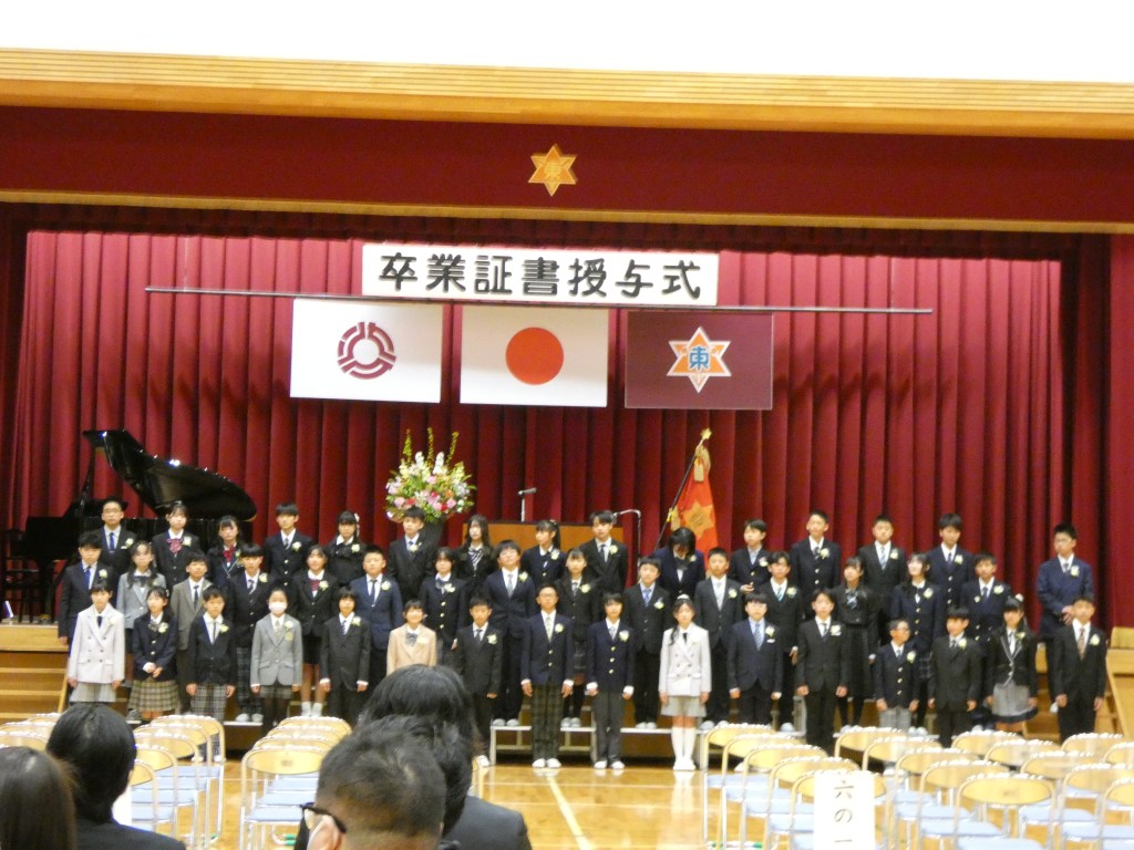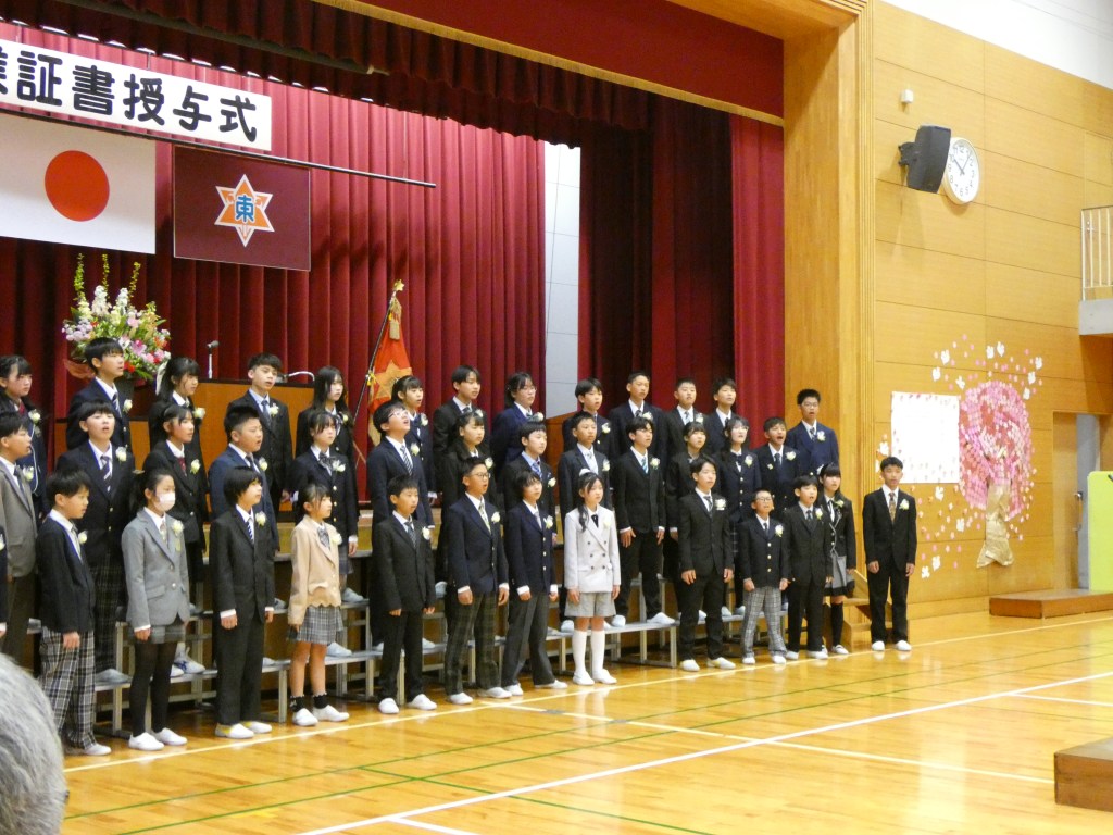 令和7年度大井川東小学校の卒業式が行われました。大変天気もよく、子供たちの門出を祝うかのように太陽の光が照らし、花々が美しく咲き誇っていました。6年間の思いと最後の1年間の成果をこの卒業式で表した子供たちでした。全員がそろって、一人一人証書を受け取ることができました。2部では自分たちで考えた呼びかけと練習してきた歌を披露し、最後の小学校での活動をまとめました。とても感動ある卒業式でした。